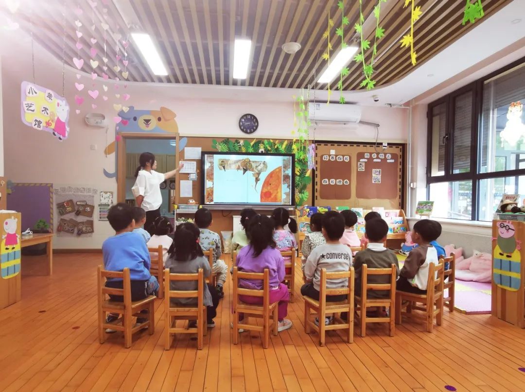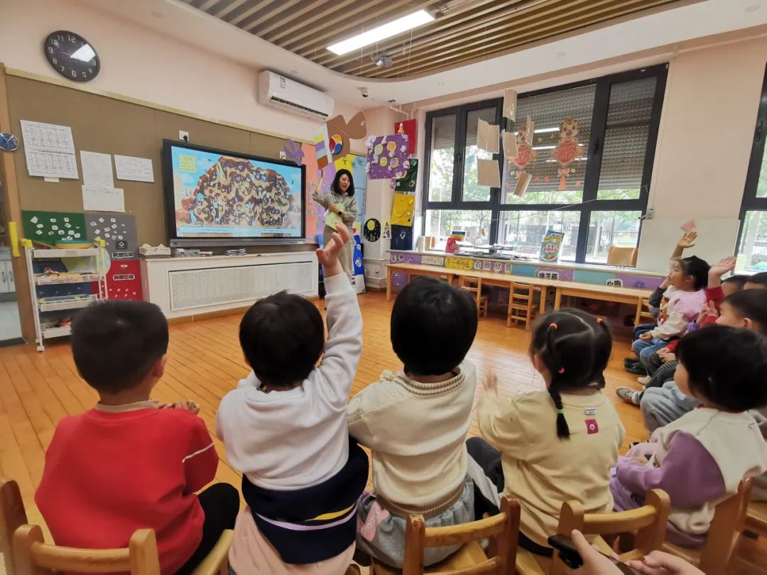 谁说读书一定要正襟危坐?看!祈东园的老师盘起腿坐在地垫上,与孩子们一起成为并肩的探险队友、一起解读建筑的奥秘、一起讨论着最佳的寻宝路线。“嘘——你们听见霸王龙的脚步声了吗?”当安老师压低嗓音晃动绘本时,所有孩子都不自觉缩起了脖子,将自己带入绘本中,用小耳朵专注地在听霸王龙的脚步……