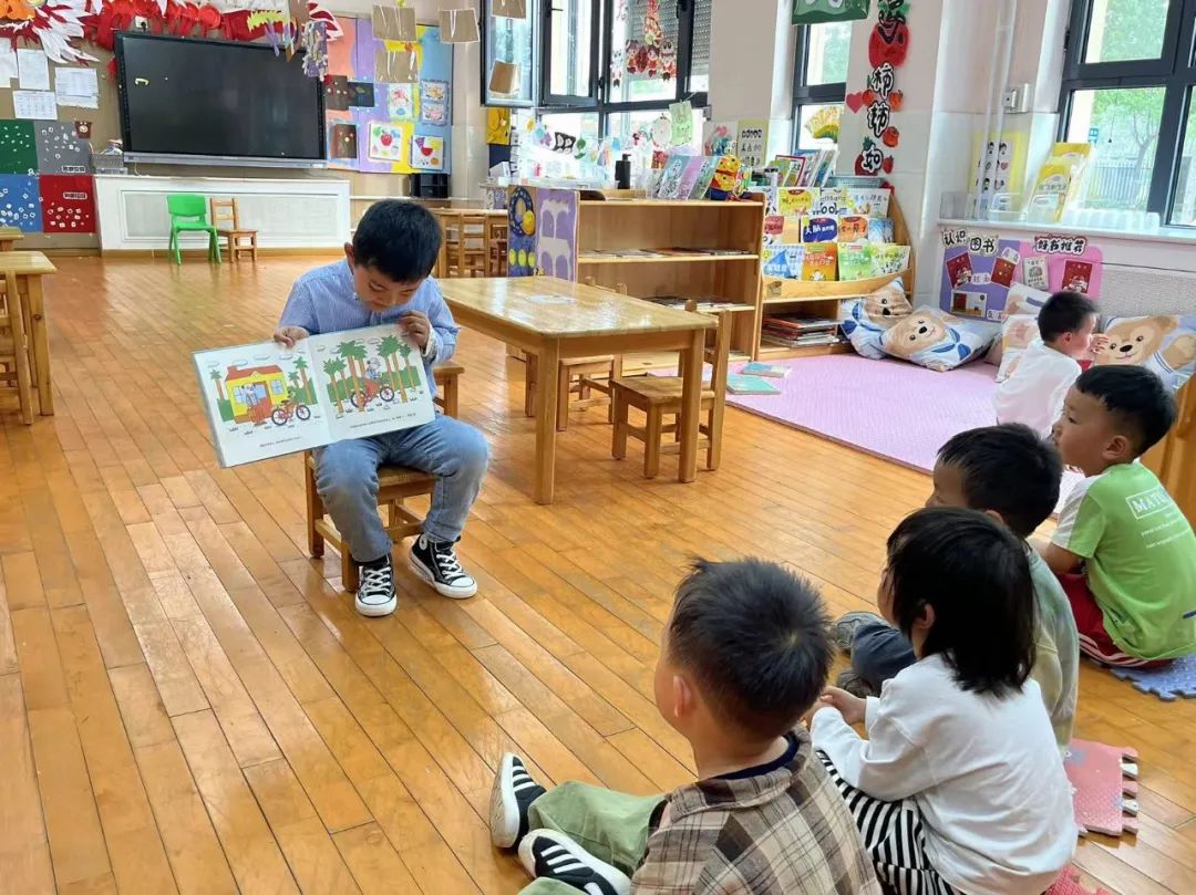 当大班的孩子用小手指着绘本《爷爷去过的地方》时,小班的“小听众”们早已围坐成一圈:“哥哥,这个爷爷要骑车去什么地方呀?”在“故事小导师”活动中,大班孩子们不仅锻炼了自己的表达能力,更在分享故事的过程中懂得了责任与关爱。小班幼儿那些专注的眼神、模仿的动作,让阅读成为跨越年龄的情感纽带,连接起每一个纯真的心灵。