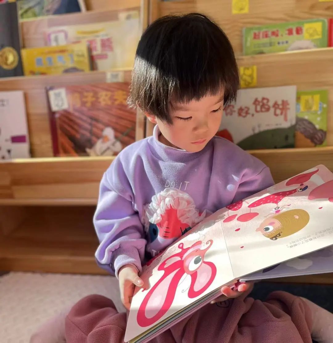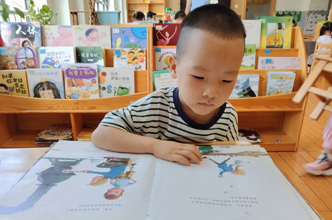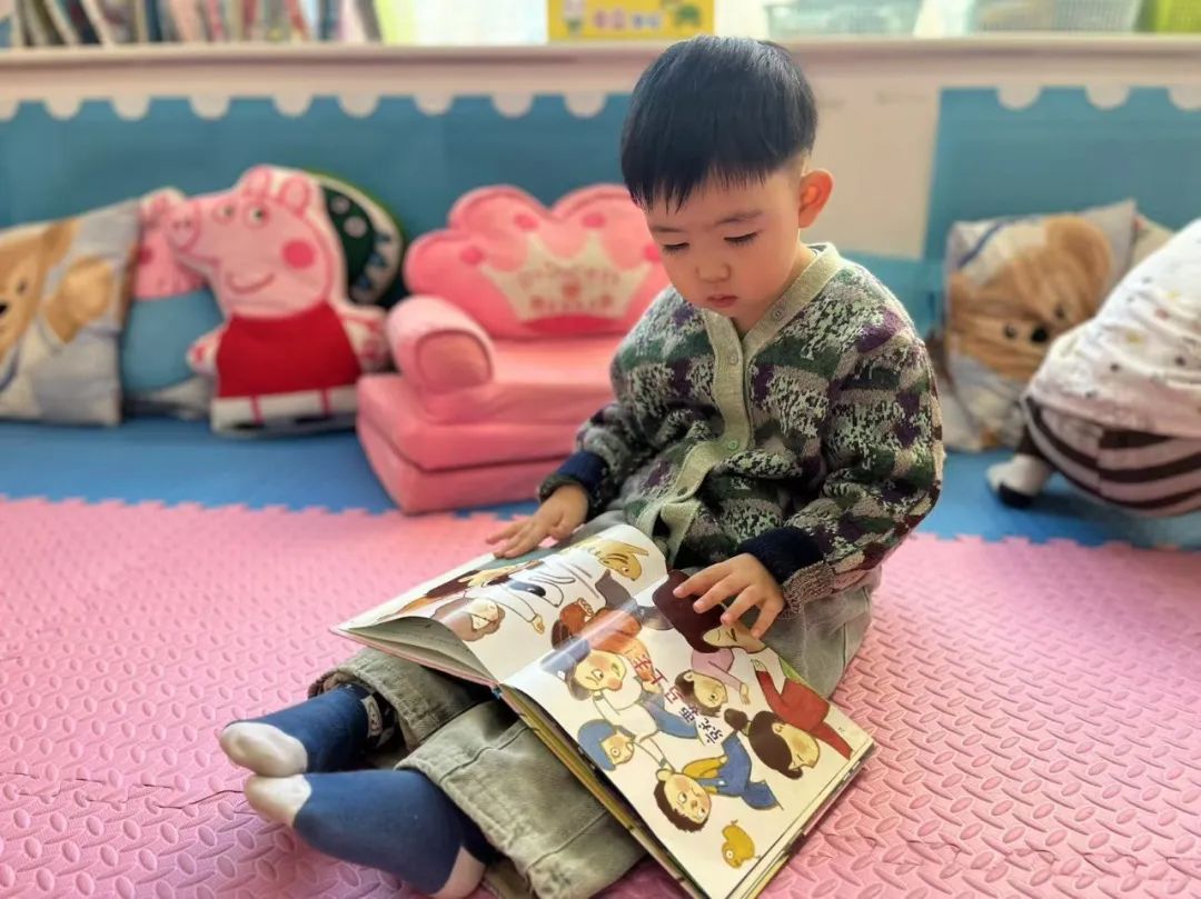在自主活动时间,总有几个孩子轻轻抽走书架上的书,像捧着珍宝般坐进沙发。他们时而对着《猜猜我有多爱你》抿嘴偷笑,时而为《爷爷变成了幽灵》皱起眉头。这些专注的侧脸告诉我们:阅读不仅是社交游戏,更是孩子与自我对话的精神岛屿。那些翻页时翘起的小脚丫、读到紧张处攥紧的小拳头,都在书写着“独立读者”的成长宣言。