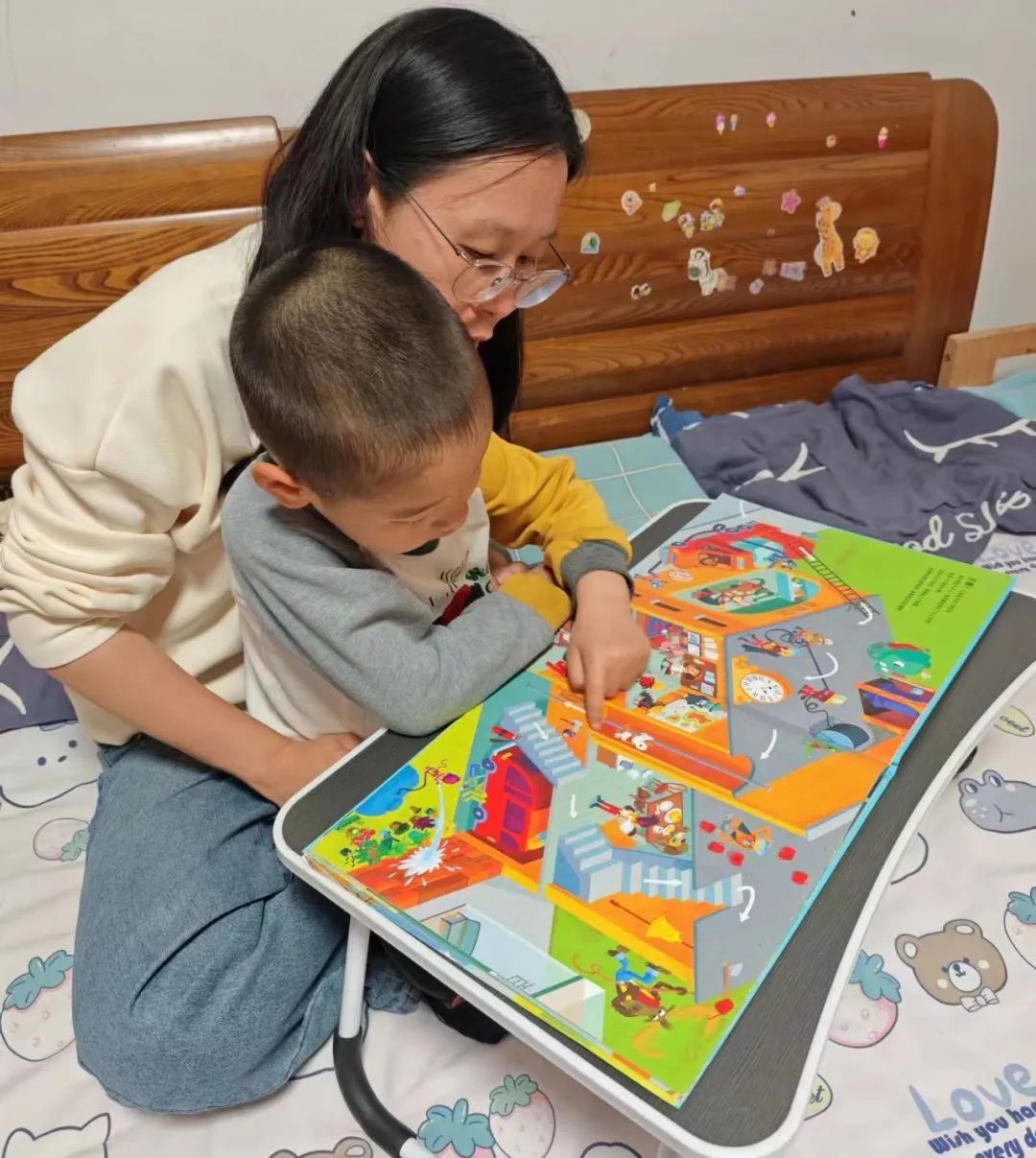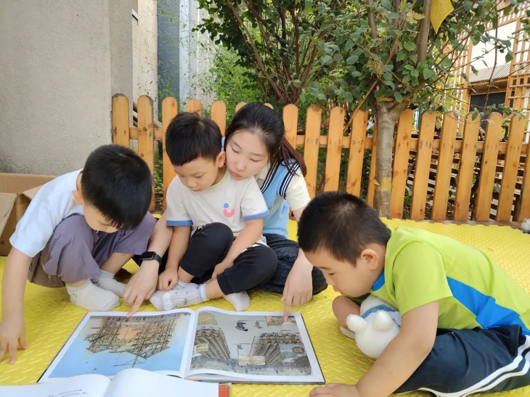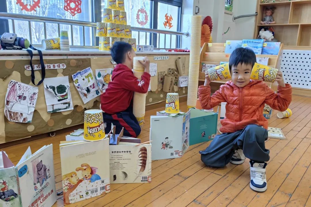 女孩子们自制道具,扮演《三只小猪》中的大灰狼和大风,上演着一幕幕精彩的剧目;男孩子们则将《了不起的工程》从书本搬到了建构区,合作设计出属于他们的超级建筑。他们将自己看过的图书用绘画的形式进行表征,放进“我的故事”盒子中,期待与小伙伴们共同分享;他们还尝试动手制作绘本以及体验一次小小图书编辑的乐趣。在祈东园,阅读不仅是翻开书页的动作,它是亲子相拥的温暖,是童声交织的回响,是搭建城堡时的一砖一瓦,是表演幕布后的欢声笑语。