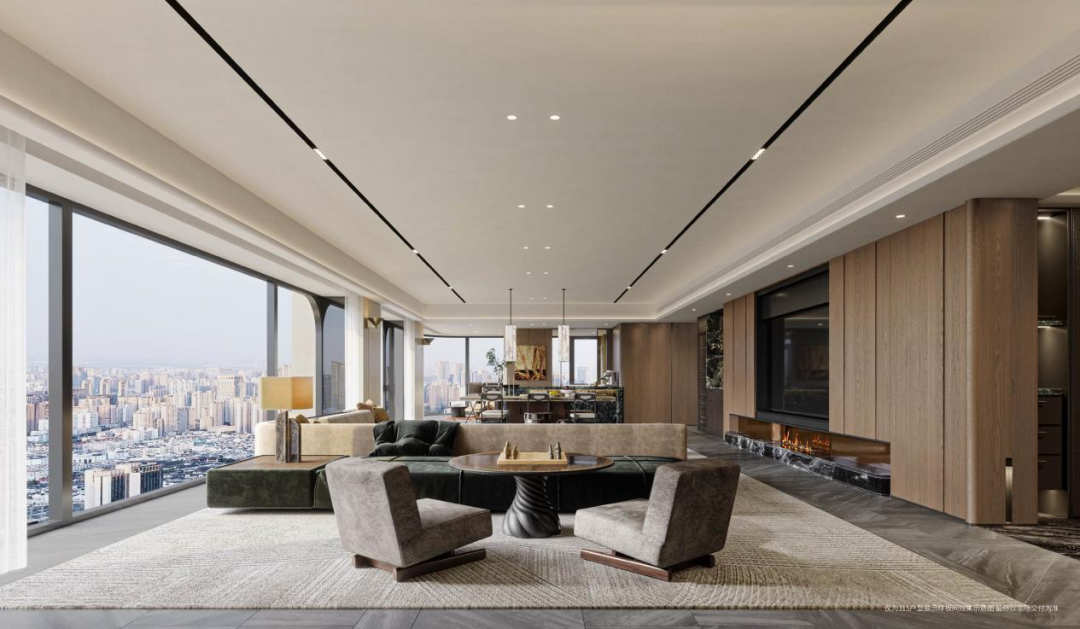 对楼内空间的设计中,上海壹号院更加打破常规:无论是框架核心筒结构、约15米面宽客餐厅、270°天际弧形窗景,还是主卧套间“酒店化”设计、独立衣帽间、景观浴缸与奢石墙面,上海壹号院通过对世界级产品的创新表达,来回应高端客户具象化的幸福感。