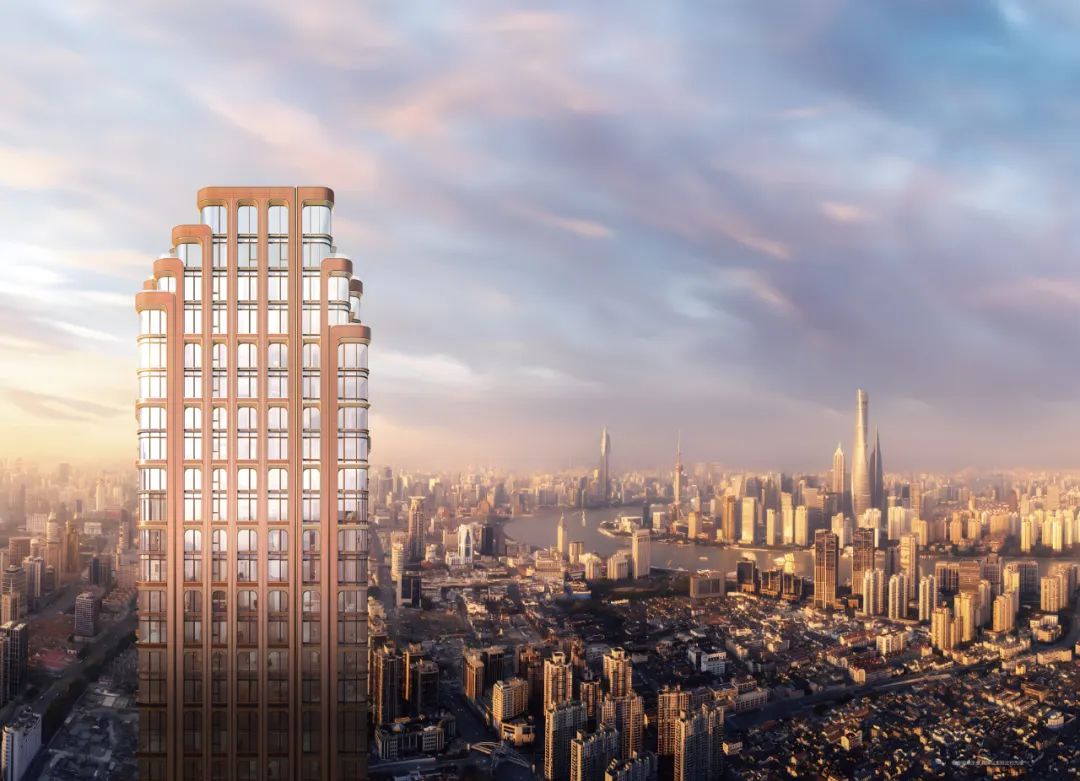上海壹号院将经典的ArtDeco立面风格与海派文化相结合,立面创新选用1200℃以上高温烧制锻造的陶板,颜色呈现海派文化标志性的砖红色,同时大面积使用三玻两腔的落地系统窗、转角曲面玻璃作为标配,使建筑既有独特的海派传统色彩,又有现代建筑的挺拔流畅,创造出新时代上海城市天际线。