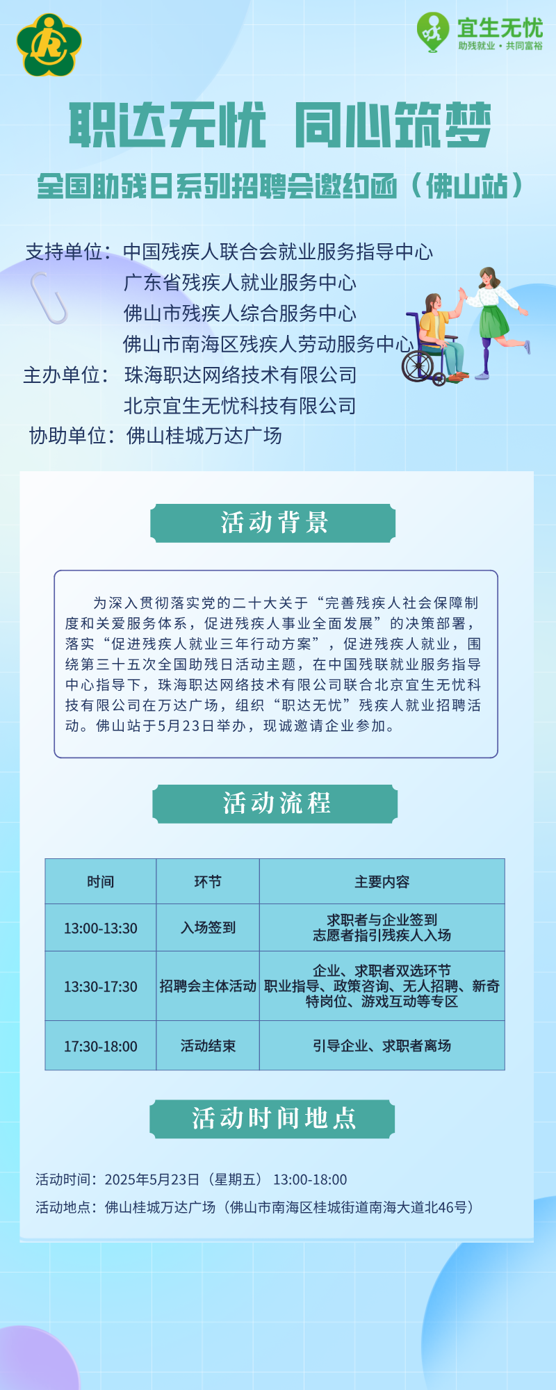 全国助残日丨佛山站残疾人公益招聘会“职”等你来~