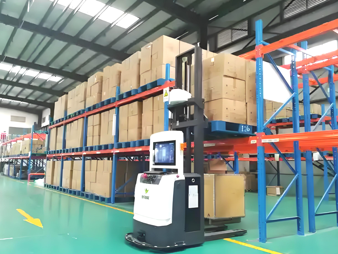 分场景作业:小型货品由3楼工作站拣选后经AGV配送至发货区;大型货品通过输送线、堆垛机自动备货,堆高车装车效率提升显著。