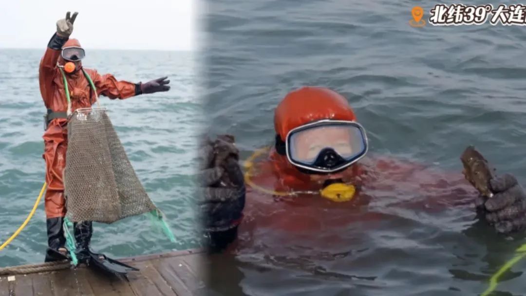 海碰子(潜水采参人)身着专业装备潜入20米深海,遵循“只捕5年以上成参,幼参放生”的可持续捕捞模式,让5万亩海域在40年间始终保持着"海晏参肥"的生态平衡。