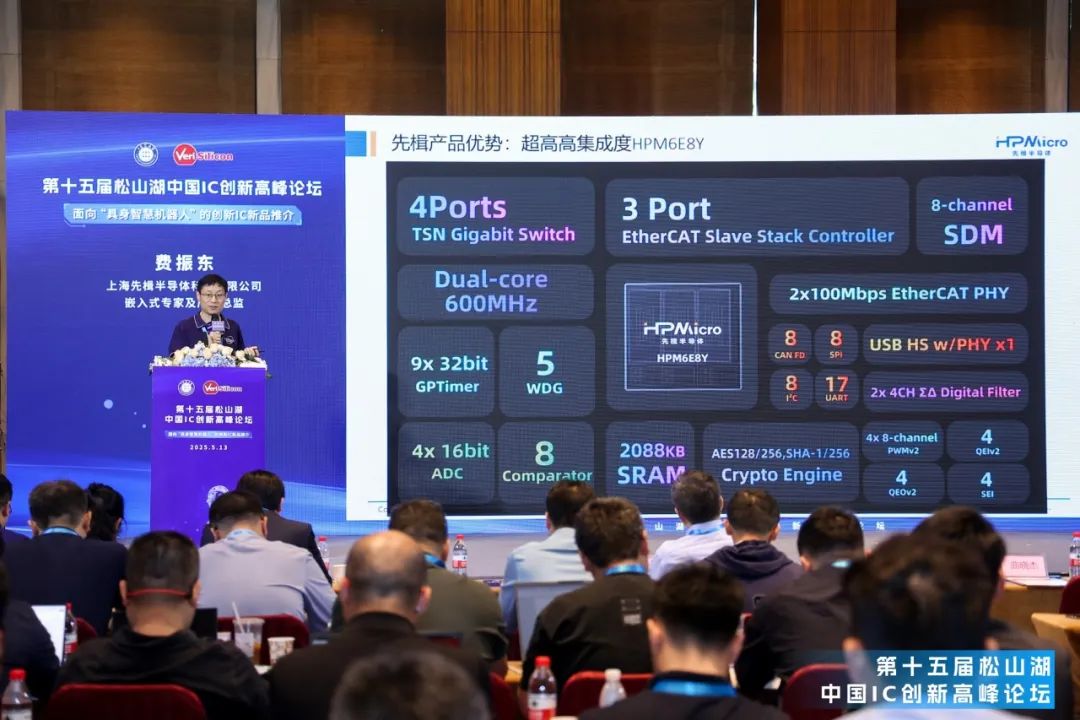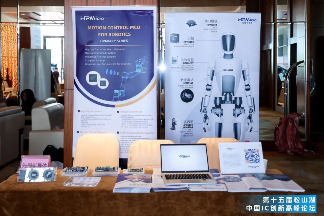2025年5月13日 东莞 | 由芯原股份主办的第十五届松山湖IC创新论坛成功举办。作为国内集成电路产业的高规格交流平台,本届论坛以“具身智慧机器人”应用为主题,汇聚了产业链上下游的众多知名企业和专家学者。高性能微控制器产品及嵌入式解决方案提供商“上海先楫半导体科技有限公司”(先楫半导体,HPMicro)受邀参会,设立专题展台并进行了主题为《先楫实时控制芯片驱动的机器人关节“芯”时代》的演讲分享,重点展示了先楫半导体高性能RISC-V MCU系列产品的最新成果及其在机器人、运动控制、EtherCAT通讯等关键场景中的技术创新及落地应用。