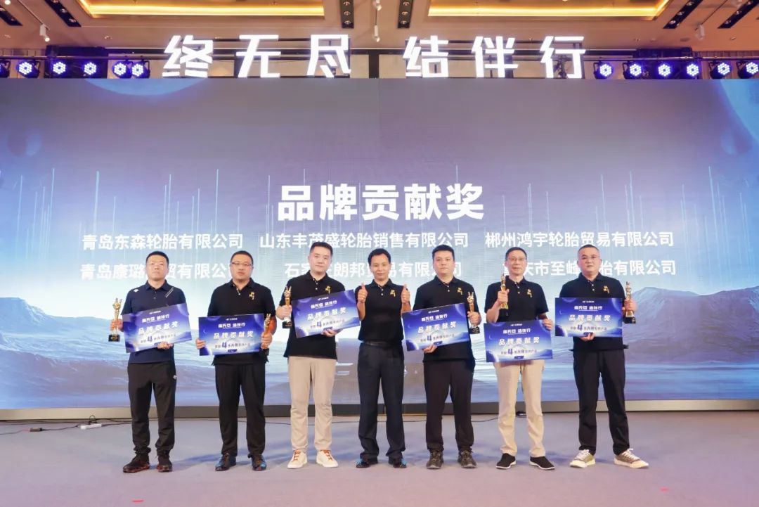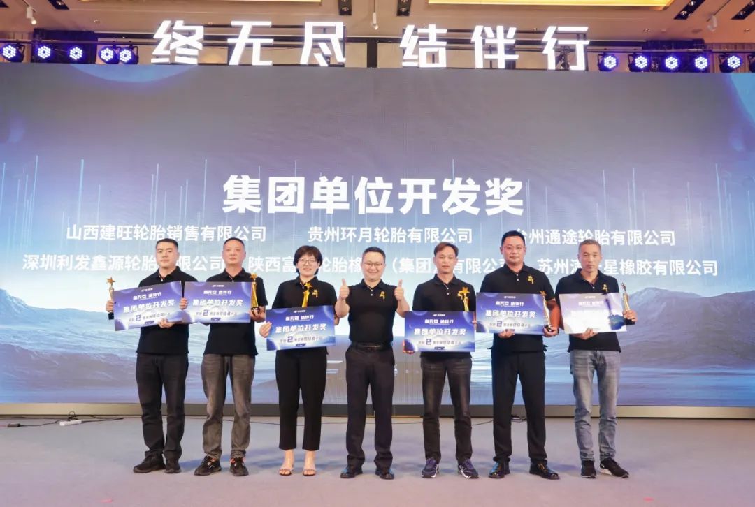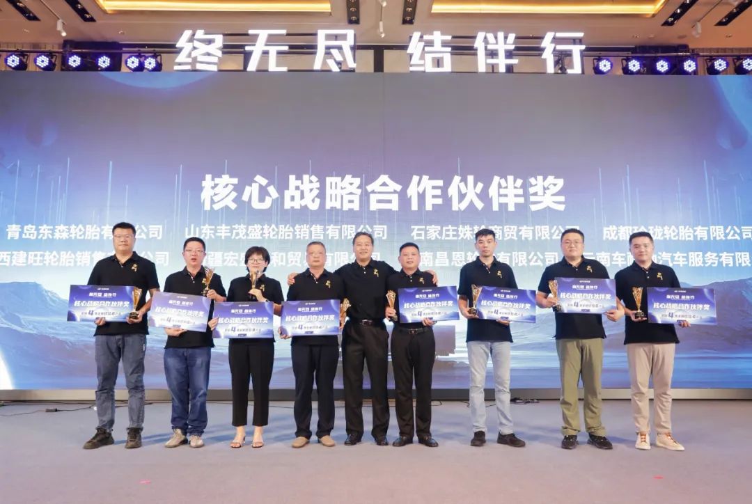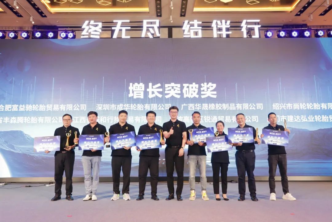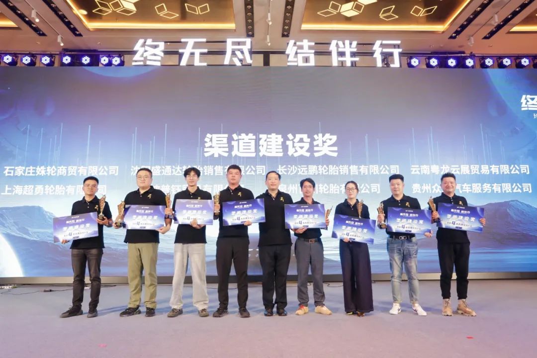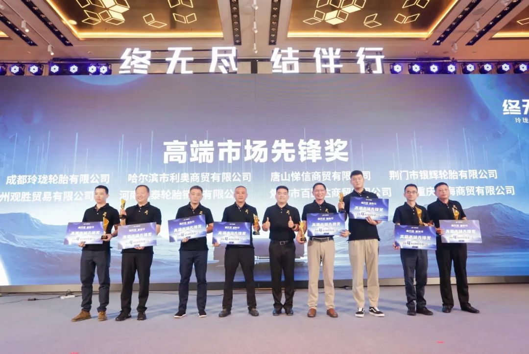 终结者系列不仅继承了玲珑的匠心独运,更深度融合了前沿科技,使产品性能达到了前所未有的高度。在竞争激烈的市场中,终结者系列的强势推出,必将凭借其卓越性能与品质,成为市场上的热销明星,为合作伙伴的渠道价值注入强劲动力。2024年上半年,经销商身处时代浪潮的尖端,他们坚守自我突破的信念,砥砺前行,紧密跟随玲珑步伐,将优质产品和创新服务带给全国用户。此次大会,玲珑特设立了六大奖项:核心战略合作伙伴奖、高端市场先锋奖、渠道建设奖、增长突破奖、集团单位开发奖以及品牌贡献奖,玲珑轮胎董事长、总裁王锋等公司领导为优秀经销商颁奖,表彰他们敢于挑战、奋勇争先、敢闯敢试的卓越表现。