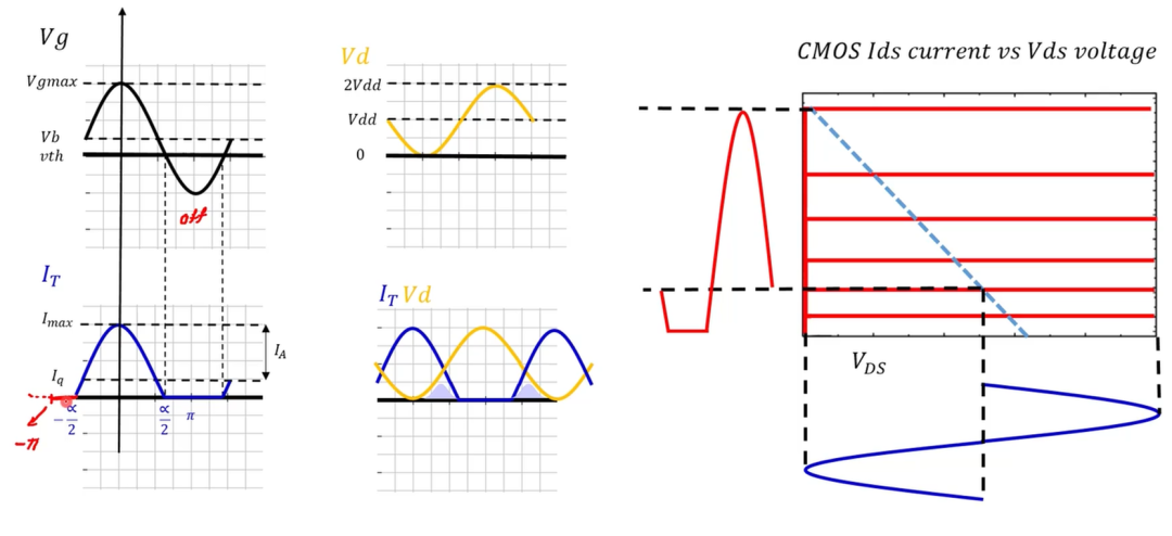Q:打扰下,有个问题请教下:在PA,工作在B 或者AB类, Ids 截至了,波形是截至正弦波,但是为啥Vds还是正弦波啊。