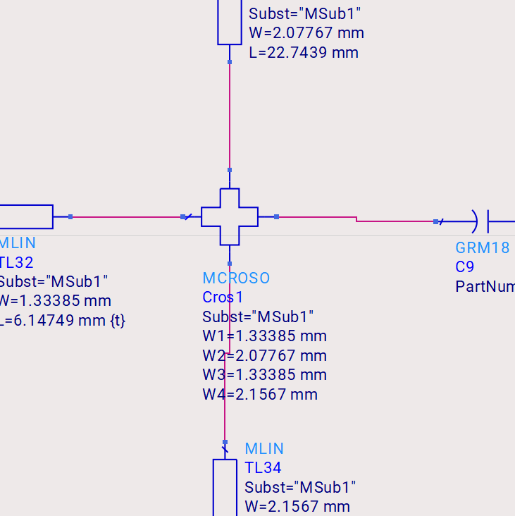 Q:大佬们,我没见过有资料介绍过MCROSO,这个微带线的四个宽度对应的方向是这样的吗?左上右下。