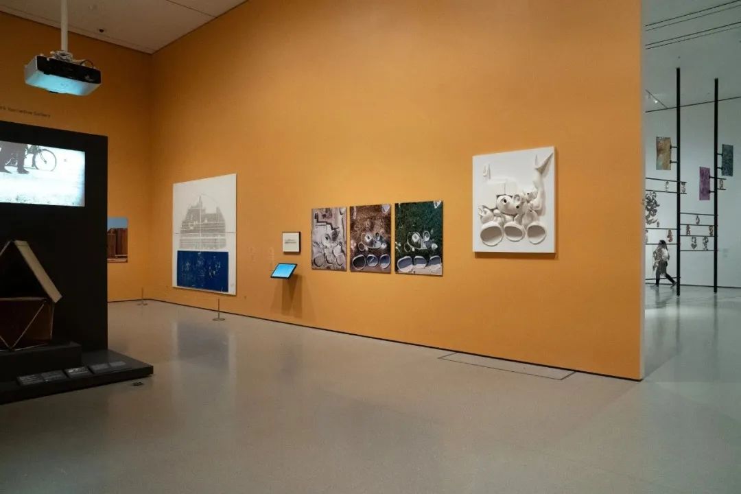 左手边主创建筑师李虎的草图原稿和电子屏上的项目图纸,忠实地记录了沙丘美术馆的设计和施工过程中的思考。MoMA还专程录制了OPEN创始合伙人李虎和黄文菁的专访,观众能够在观看作品时戴上耳机,以声音的方式走进这座远在大洋彼岸的美术馆。