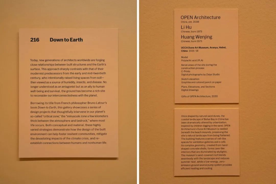 2024年12月,「Down to Earth」建筑设计展览在216展厅拉开序幕,展出MoMA近四十组、跨越小半个世纪的珍藏,由阿那亚委托OPEN建筑事务所设计的沙丘美术馆项目是其中一件重要作品。MoMA策展人Paula Vilaplana de Miguel在给OPEN合伙人的邮件中说,“现在展览仅仅开幕了几周,我们就已经收到了很多来自观众和同事们的非常积极的反馈。你们这件作品是这次展览叙事的核心组成部分,我们真的非常荣幸MoMA收藏了这件作品。”
