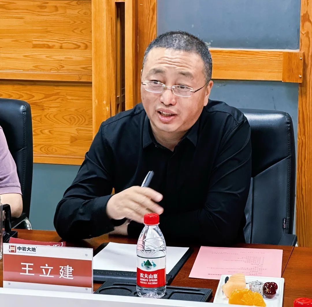 王立建代表公司对刘汉龙院士一行来公司交流讲座表示热烈欢迎,他简要介绍了公司的基本情况,表示中岩大地一贯坚持以“核心技术+核心材料”为国家战略服务,致力于在核电、港口、水利水电等领域持续深耕。王立建进一步阐明公司坚持研发创新、技术先行,积极攻关行业卡脖子技术,推动与高等院校、科研院所等联合开展关键技术攻关,破解技术难题,为岩土工程行业高质量发展护航。