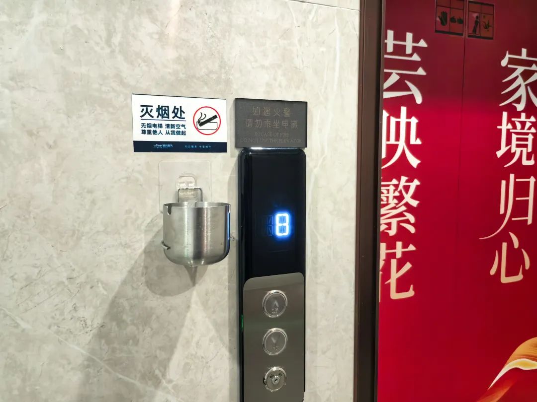 在花芸春境,像“宠物公厕”一样的巧思还有不少,比如电梯间里的灭烟处。“有几幢的电梯间经常闻到若有若无的烟味。"项目经理苦笑道:“每个电梯都有禁止吸烟的标识,但总有业主拿着烟头就冲进轿厢。"住在12楼张阿姨深有体会,她说:“有时候电梯门一开,烟味很浓的,我们进都不好进。"作为一个老烟民,业主赵大爷也有自己的苦衷:“有时回家路上点支烟,进电梯才想起没掐灭,电梯里又找不到摁灭的地方。”为此,服务团队特别制作了“灭烟桶”,悬挂在一楼电梯按键旁边。“灭烟桶”由不锈钢制作,用粘钩挂在墙面上,里面还添了水方便灭烟。为防止烟头异味,保洁在清理楼道时也会对灭烟桶进行清洗。“这下方便多了,按电梯的时候看到这个,就会顺手把烟灭掉。”一位业主点赞道。晨跑结束的王雨薇,路过14幢楼下时特意驻足看了看那片心形围栏的宠物公厕。砂石整洁,没有异味。等电梯时,电梯间里也再不见烟味弥漫的困扰。她笑着擦去额角的汗珠,对迎面走来的物业人员竖起了大拇指。