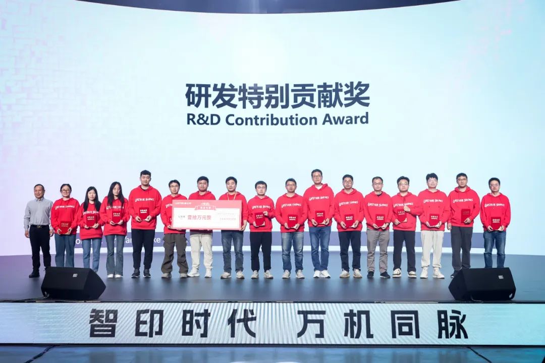凌云光VP8研发团队以创新突破技术边界受到表彰,浙江彩之源新材料科技有限公司总经理杨卫力为团队颁奖,高度评价了凌云光的检测系统在其生产管理和产品品质提升方面带来的帮助,未来希望双方加强合作携手建立自己的品质控制中心。
