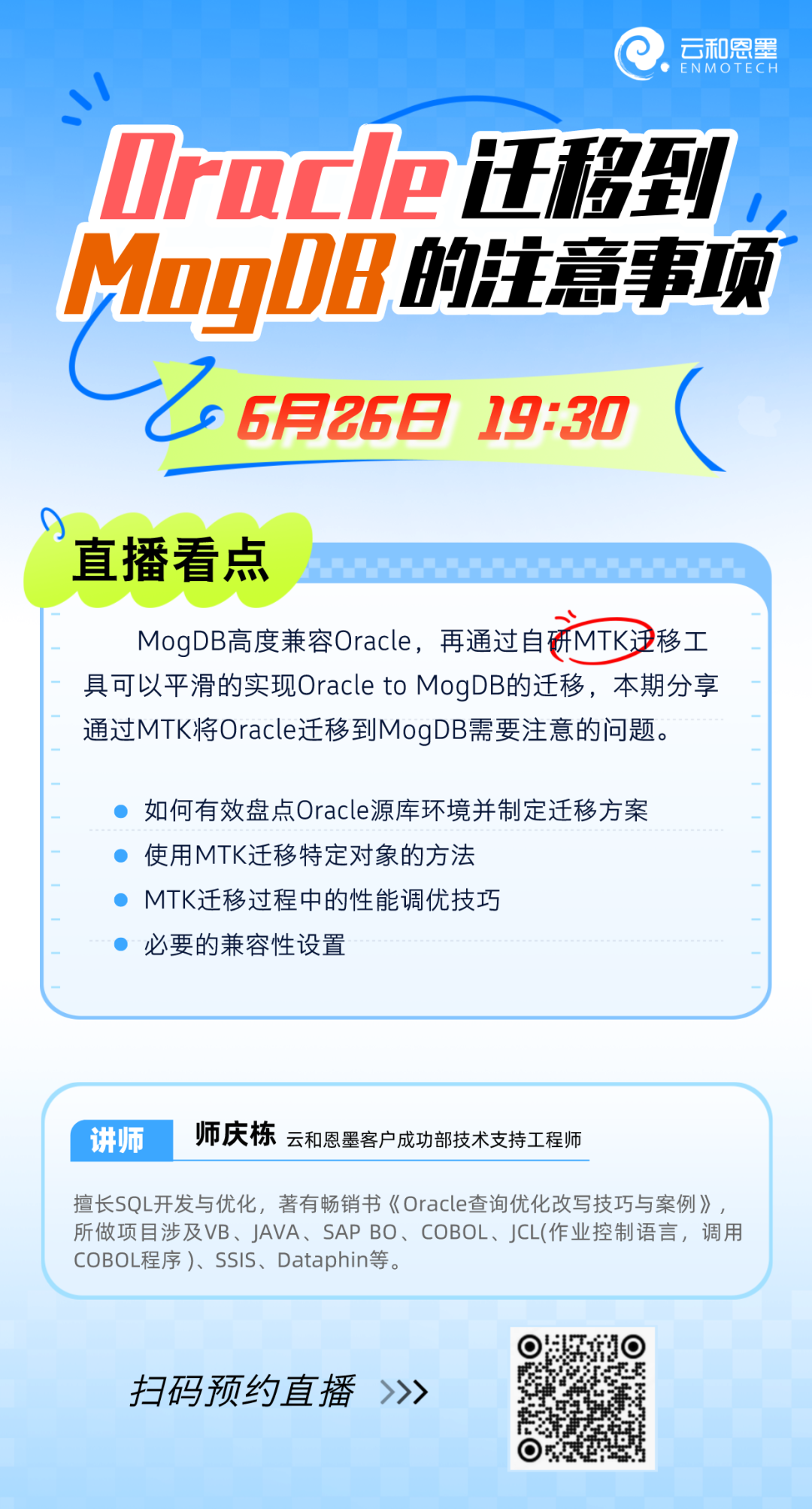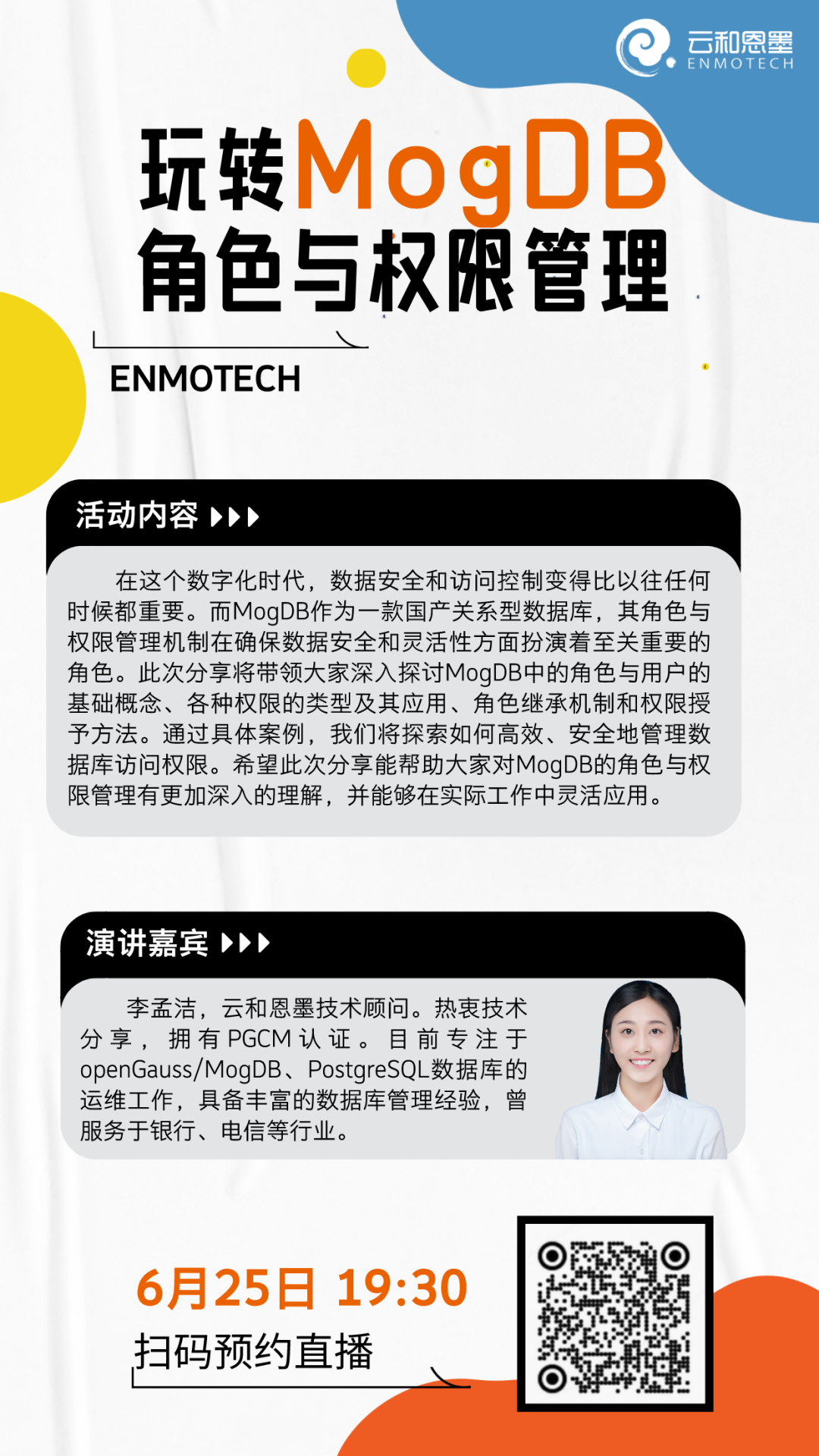 下周两场直播,讲述Oracle迁移至MogDB的注意事项及MogDB角色与权限管理