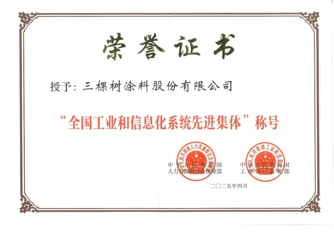 此次荣膺 “全国工业和信息化系统先进集体”,既是对三棵树创新实践的权威认证,更为企业注入持续奋进的动力。面向未来,三棵树将以此荣誉为起点,深化自身在科技创新、智能制造、绿色发展与国家新型工业化战略的有机融合,加速推进新型工业化转型构建经济效益与社会价值共生共荣的发展新格局,为新型工业化建设和美丽中国建设贡献更多标杆范例。