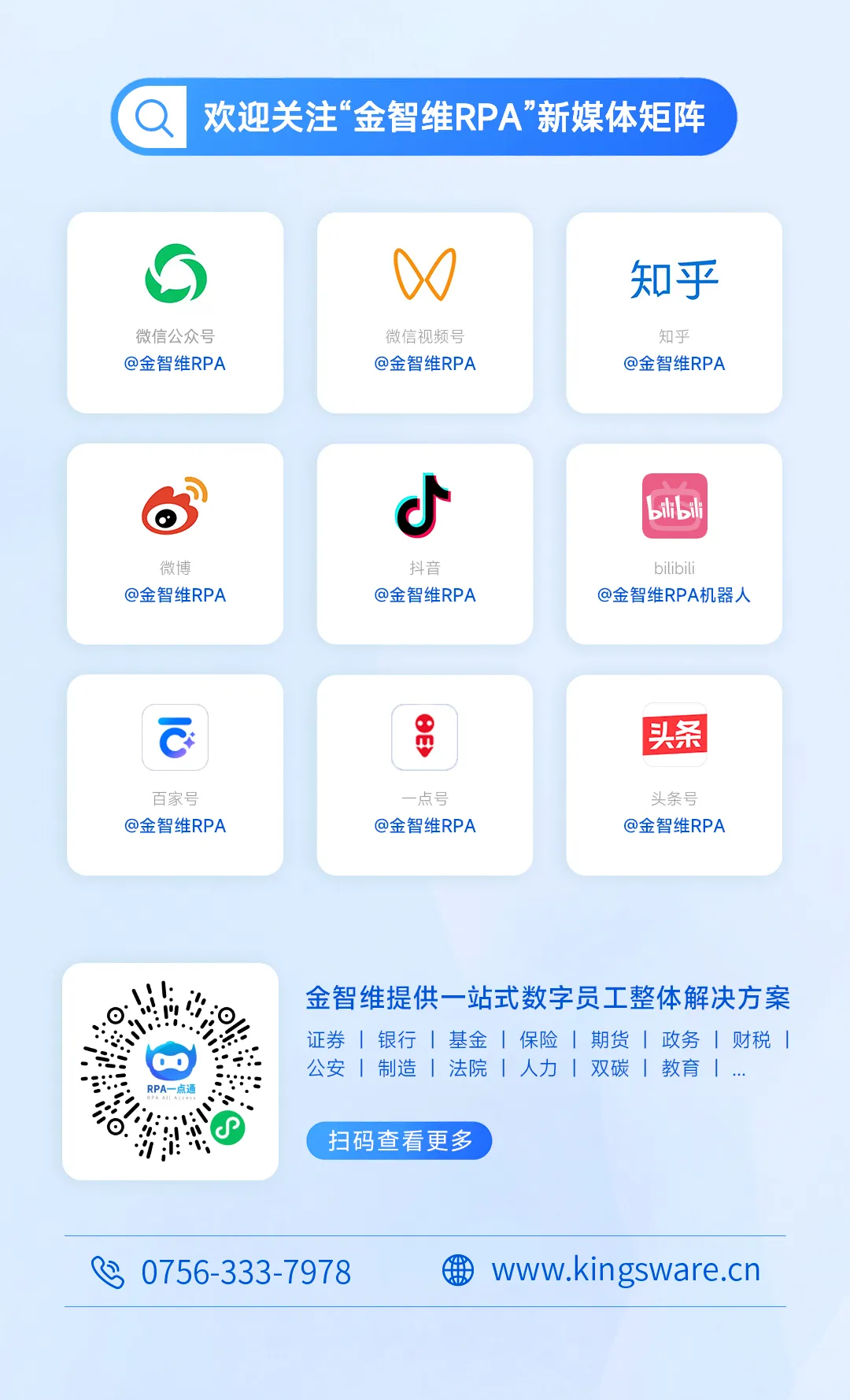 眼下,一场深刻的生产力变革正在悄然酝酿,无论是蓬勃发展的RPA技术,还是蓄势待发的生成式人工智能与大模型,都为新质生产力的发展轨迹勾勒出更为明确的轮廓。可以预见的是,在新质生产力的助力下,数字中国建设进程将得到巨大提速。作为国家级专精特新“小巨人”企业,金智维将坚持以科技创新为支撑,加快将科技成果转化为新质生产力,为数字经济高质量发展提供新的成长空间。