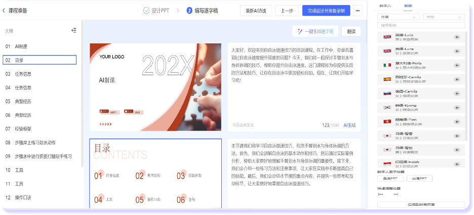 AI数字人讲师授课,自选虚拟形象和配音,不受空间限制,避免真人反复排练录制。
