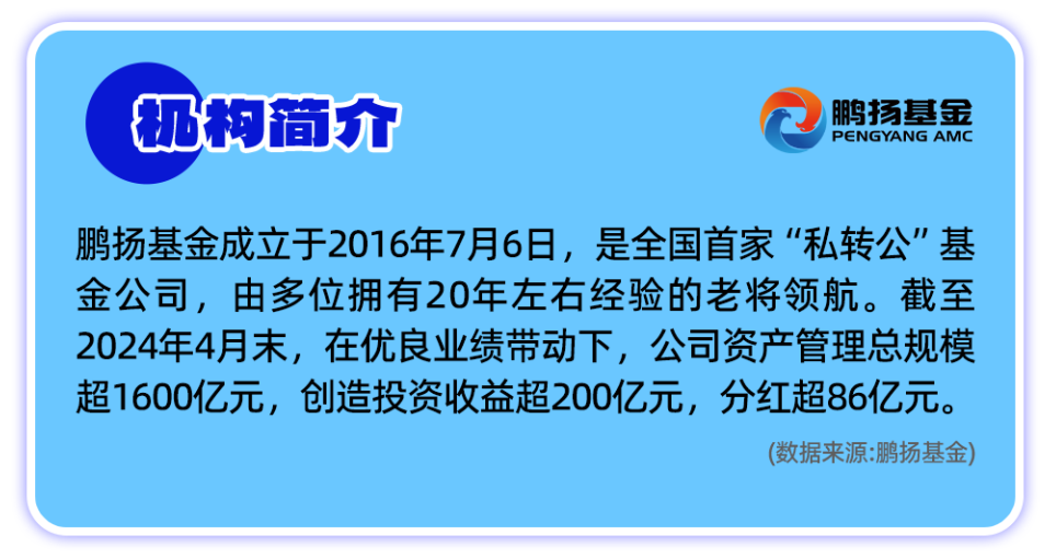 本材料由鹏扬基金管理有限公司提供(以下简称“鹏扬基金”)。本材料为客户服务材料,不构成任何法律文件,本材料所刊载部分内容引用信息来自公开资料,鹏扬基金力求但不保证这些信息的准确性和完整性。所载观点、结论及意见不构成任何投资与交易决策依据。本材料中所列示行业仅供参考,不代表任何投资建议或承诺,也不代表本公司未来长期必然的配置方向。对于任何因使用或信赖本资料内容而造成(或声称造成)的任何直接或间接损失,鹏扬基金不承担任何责任。本材料所刊载内容可能包含某些前瞻性陈述,前瞻性陈述具有一定不确定性。若后续市场情况存在变化,鹏扬基金可根据实际情况进行调整。投资者应当充分了解基金定期定额投资和零存整取等储蓄方式的区别。定期定额投资是引导投资者进行长期投资、平均投资成本的一种简单易行的投资方式,但并不能规避基金投资所固有的风险,不能保证投资者获得收益,也不是替代储蓄的等效理财方式。投资有风险,基金投资需谨慎。投资者在投资鹏扬基金管理的产品前,应认真阅读基金合同、招募说明书(更新)和基金产品资料概要(更新)等基金法律文件,全面认识基金产品的风险收益特征,在了解产品情况及销售机构适当性意见的基础上,选择适合自身风险承受能力的基金产品进行投资。