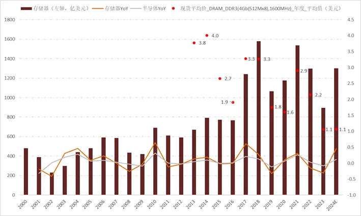 其次,存储芯片或进入新一轮上行周期。存储芯片作为半导体的重要细分赛道,历史上看它与半导体大板块有趋同的周期性,但一定程度上又有更高的波动性。