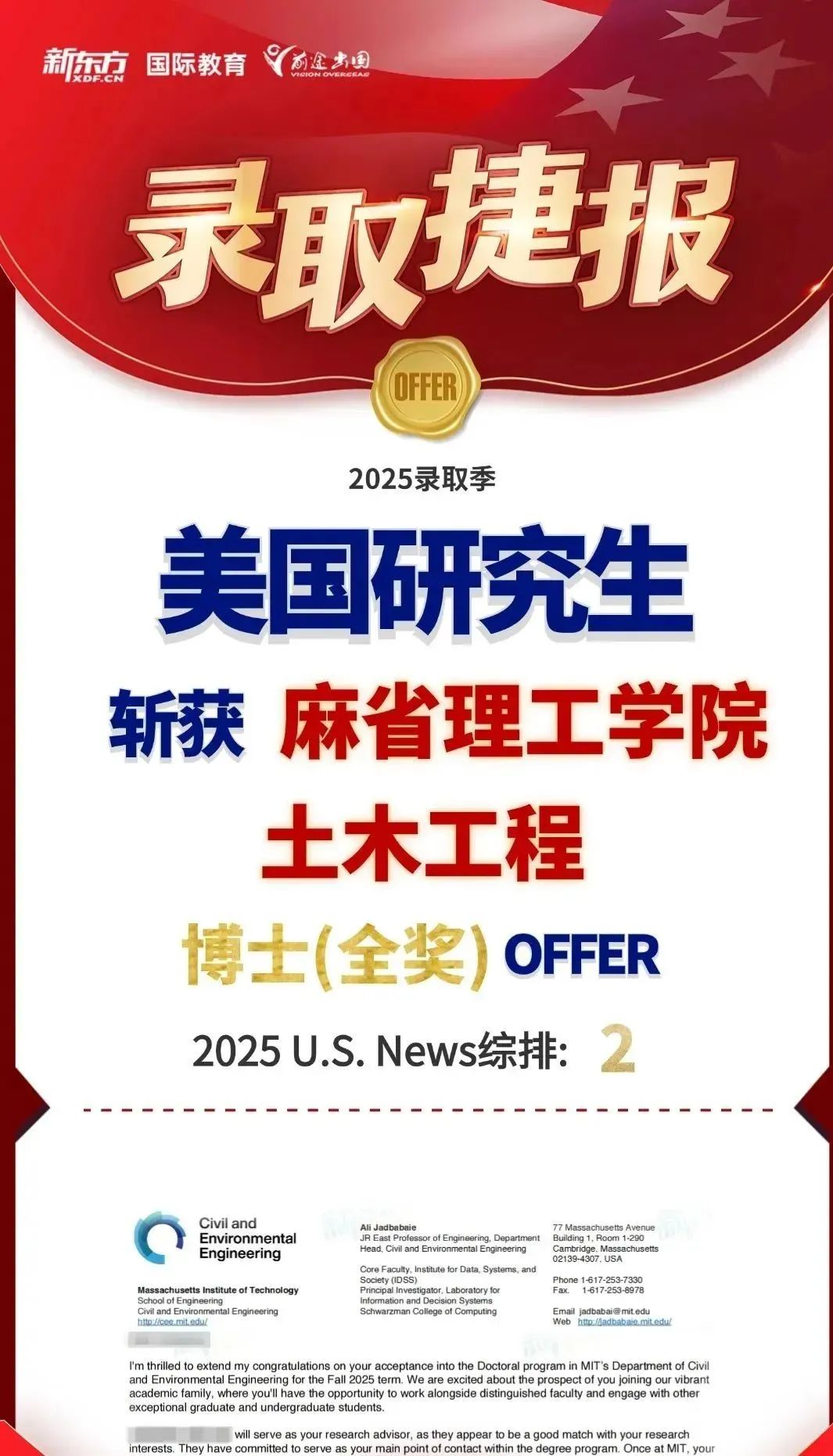 截至5月15日,新东方前途出国在2025年录取季中共斩获U.S.News TOP50院校Offer共9655枚!并且实现“哈耶普斯麻”大满贯!