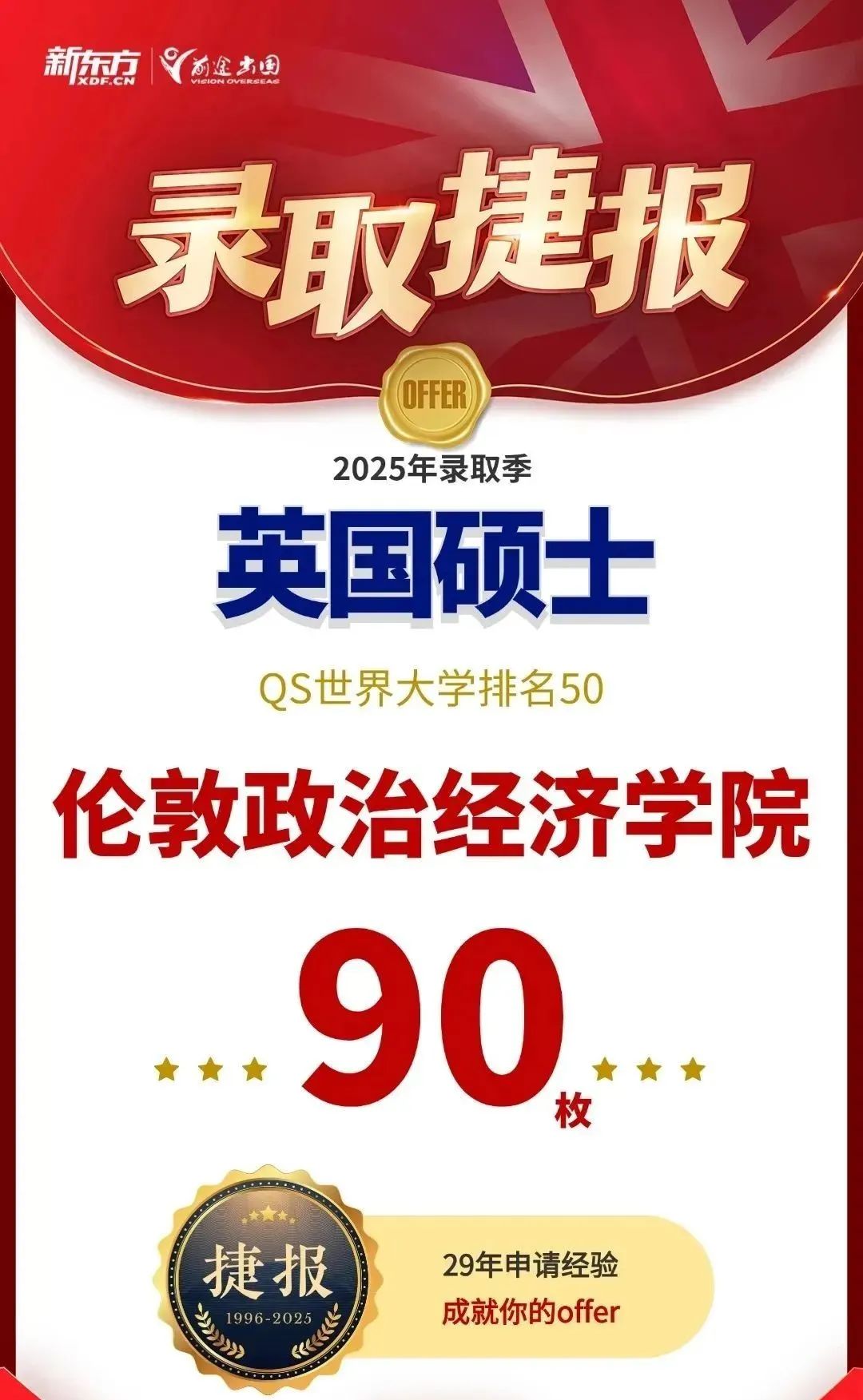相比于2024申请季,2025年英国院校的审理速度相对较快,且录取率同期对比整体增长8%。截至5月,新东方前途出国共斩获QS TOP200院校硕士录取总数,共计19837枚的好成绩!