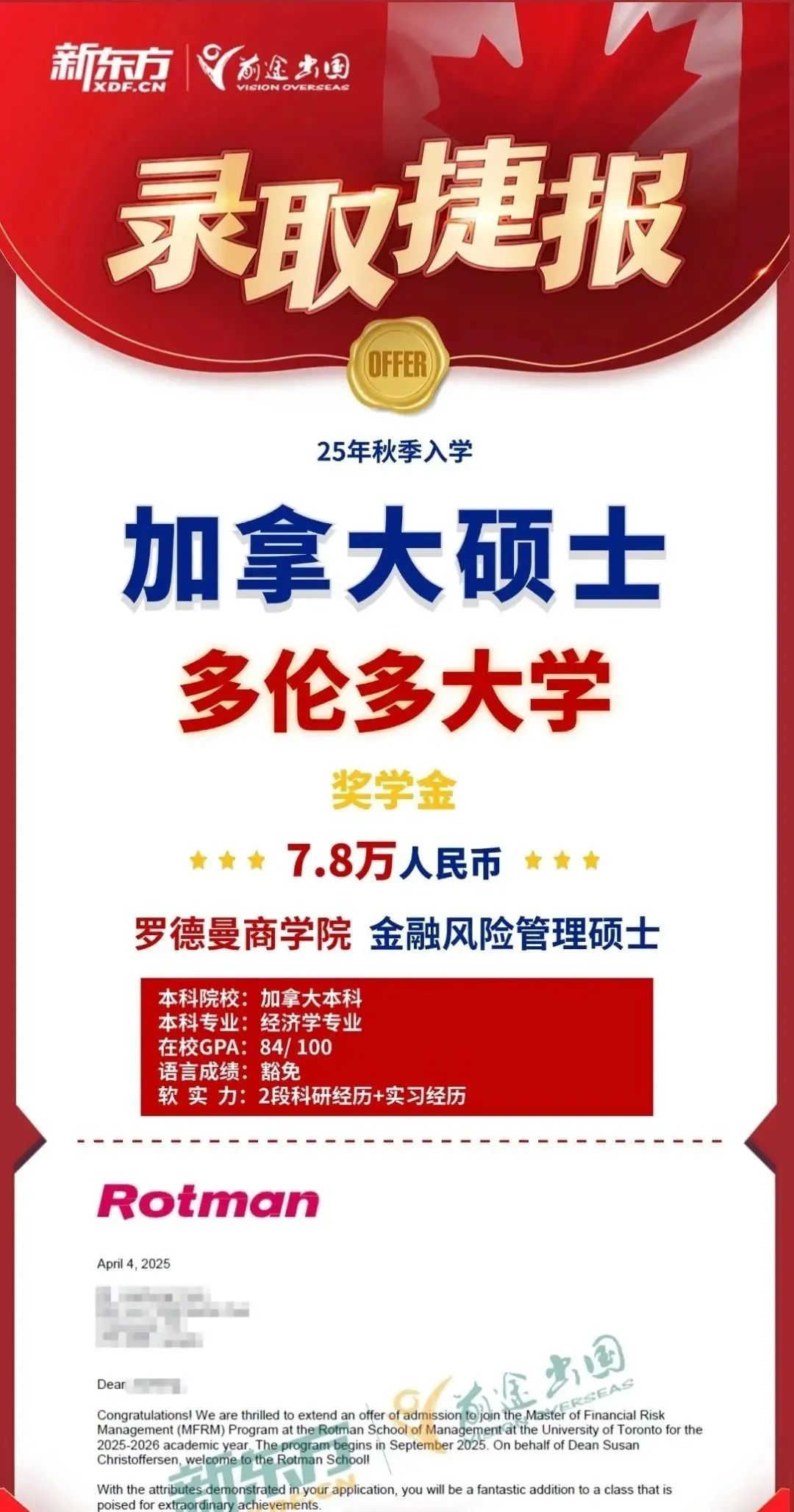 2025录取季,加拿大硕士留学依然保持着高热度,截至5月15日,新东方前途出国加拿大录取总数为7582枚。