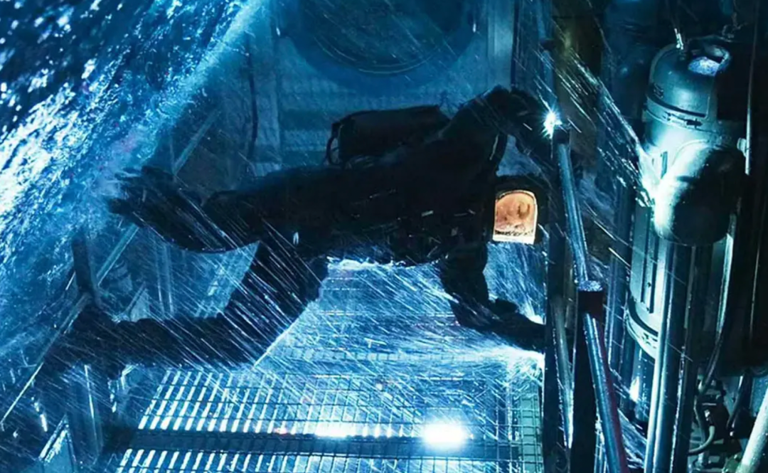 这段戏的幕后拍摄过程同样困难重重。团队首先搭建了一个850万升水的巨大水箱,模拟深潜效果,还建造了一个可以旋转的潜艇道具,里面布满了各种各样的碎片、架子和道具鱼雷。