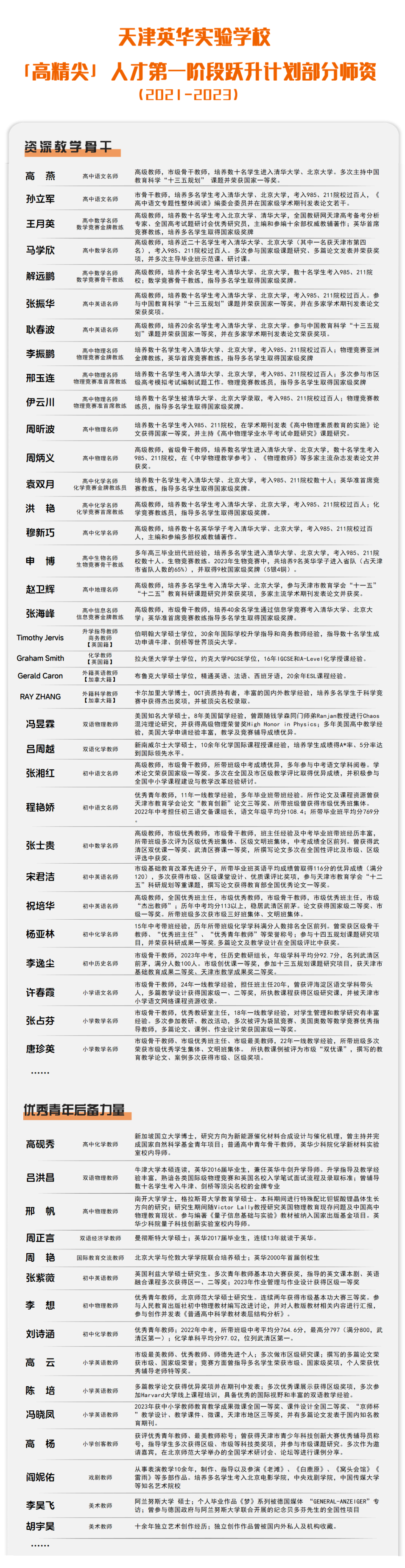4.10 年及以上本学科高中教学经验,培养考入清华、北大学生人数 30 人及以上;