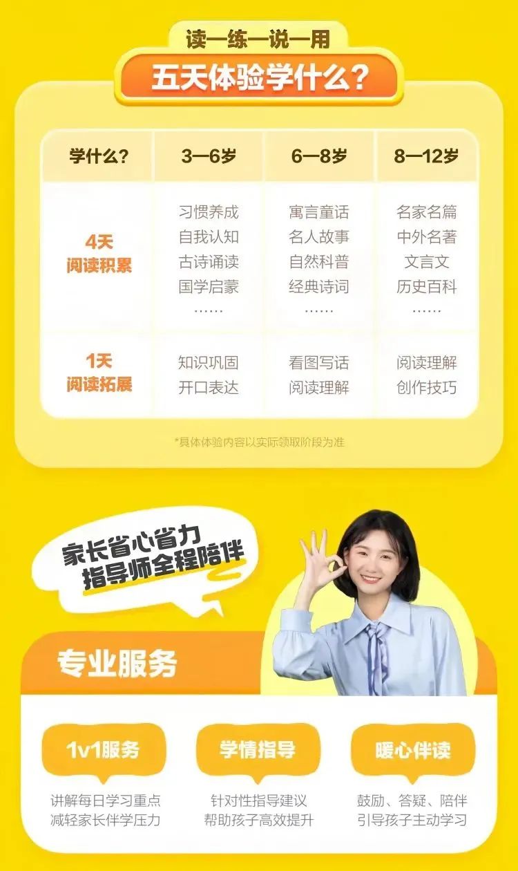 推荐你给孩子报名【叫叫分级阅读5日训练】,用科学的方法针对性解决孩子不爱读、不会读、不坚持、不会用的四大问题。