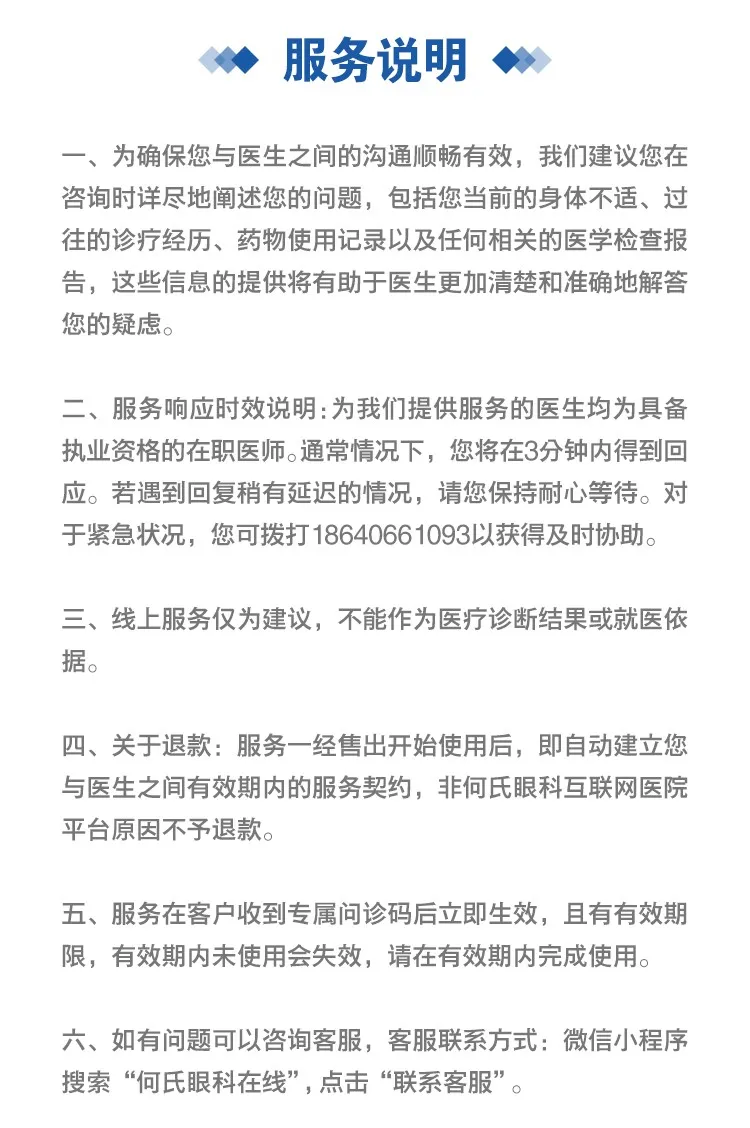 何氏眼科互联网医院作为何氏集团旗下创新眼健康生态平台,立足上市公司强大资源体系、优秀专家团队与产研服务能力,致力于为全龄用户提供集在线问诊、健康监测、预约挂号、线上开药于一体的全生命周期眼健康管理服务。点击下方图片跳转链接▼