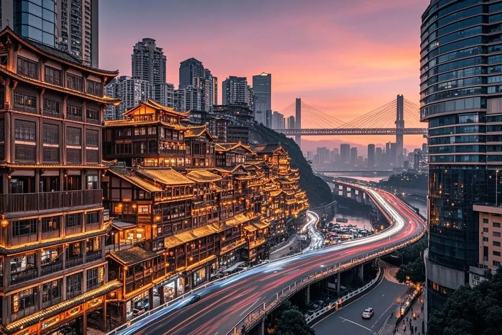 重庆洪崖洞:吊脚楼结构借鉴南方干栏式建筑,底层架空防洪,顶层观景揽月,完美解决山地城市“小满多雨”的难题。