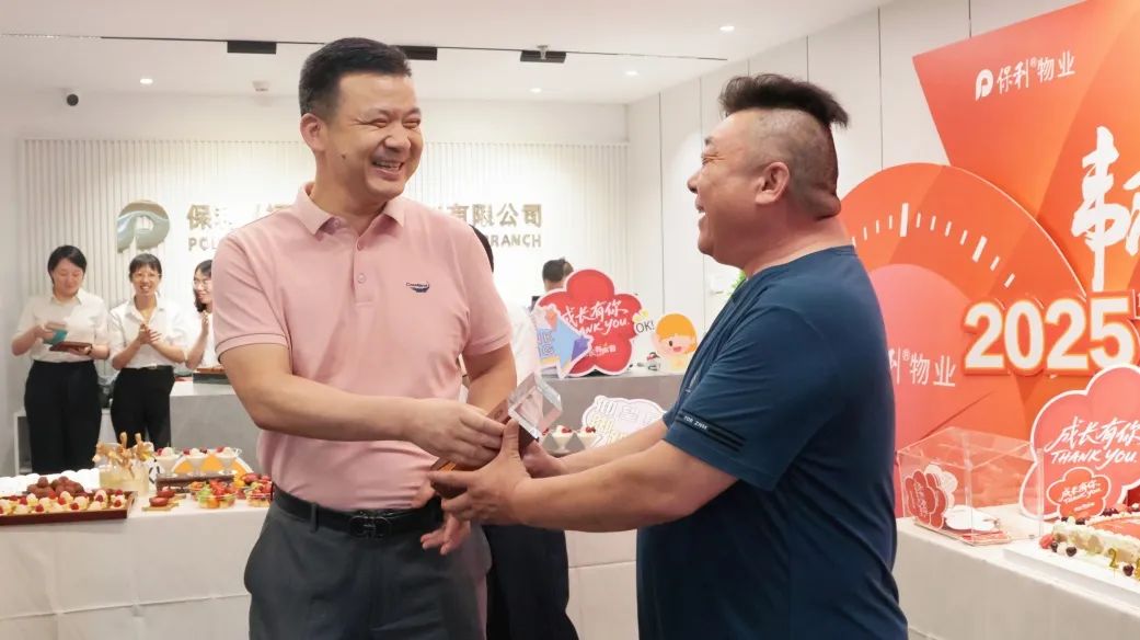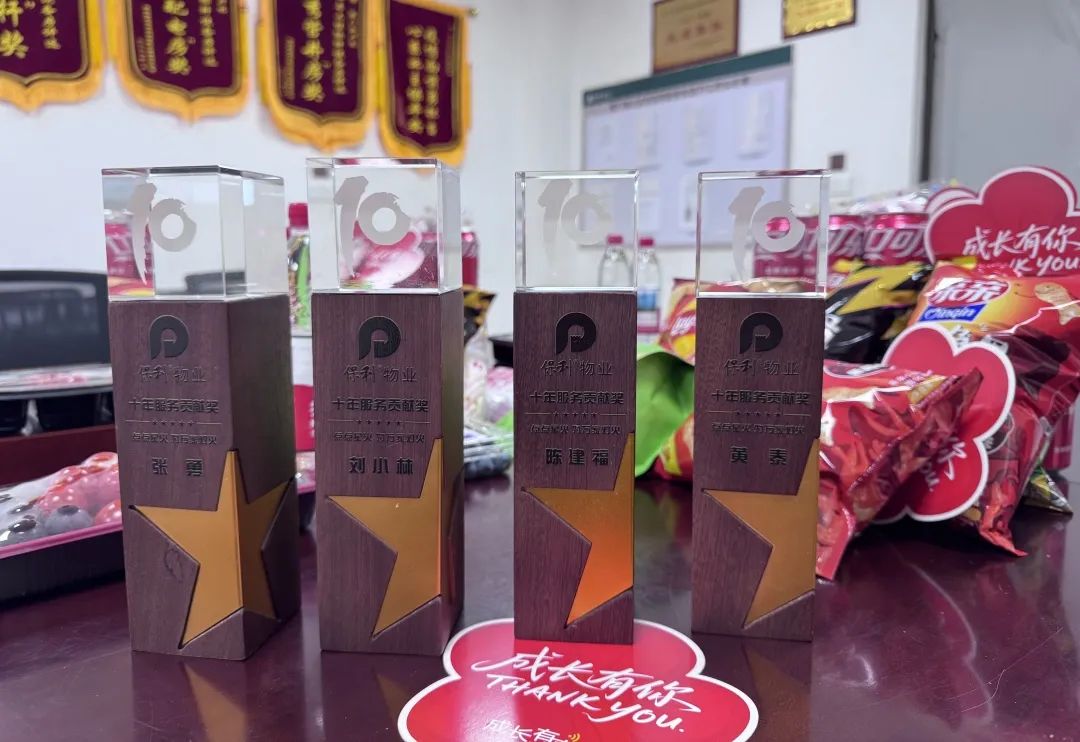 领导代表分别为入职满周年的职能员工颁发精美周年纪念品;为入职满十周年的同事颁发专属定制的“十周年荣誉奖杯”。