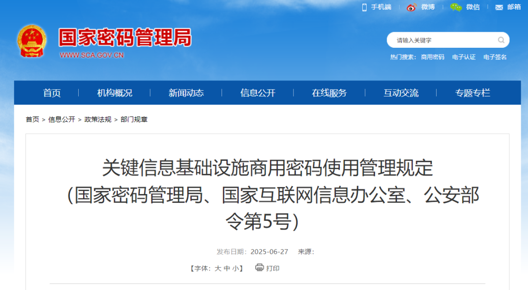 重磅!国密局、网信部、公安部联合发布《关键信息基础设施商用密码使用管理规定》