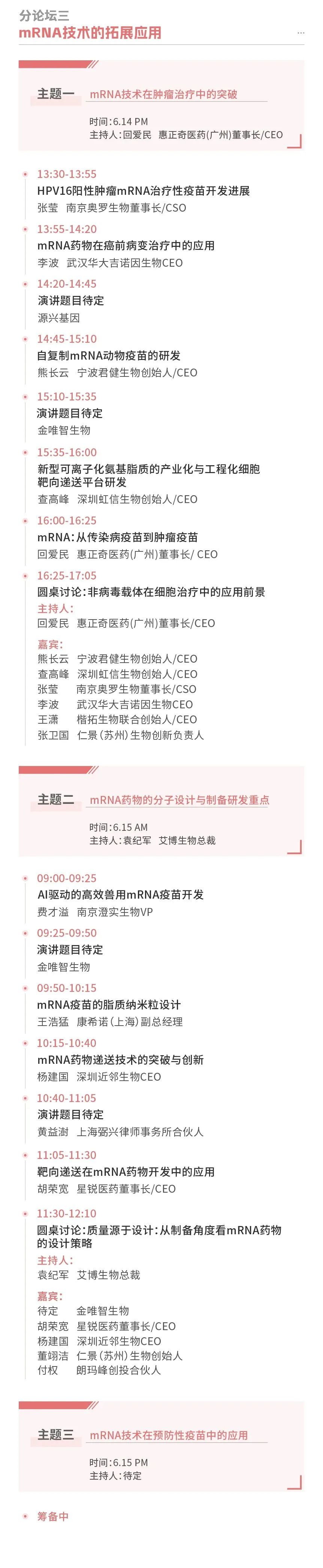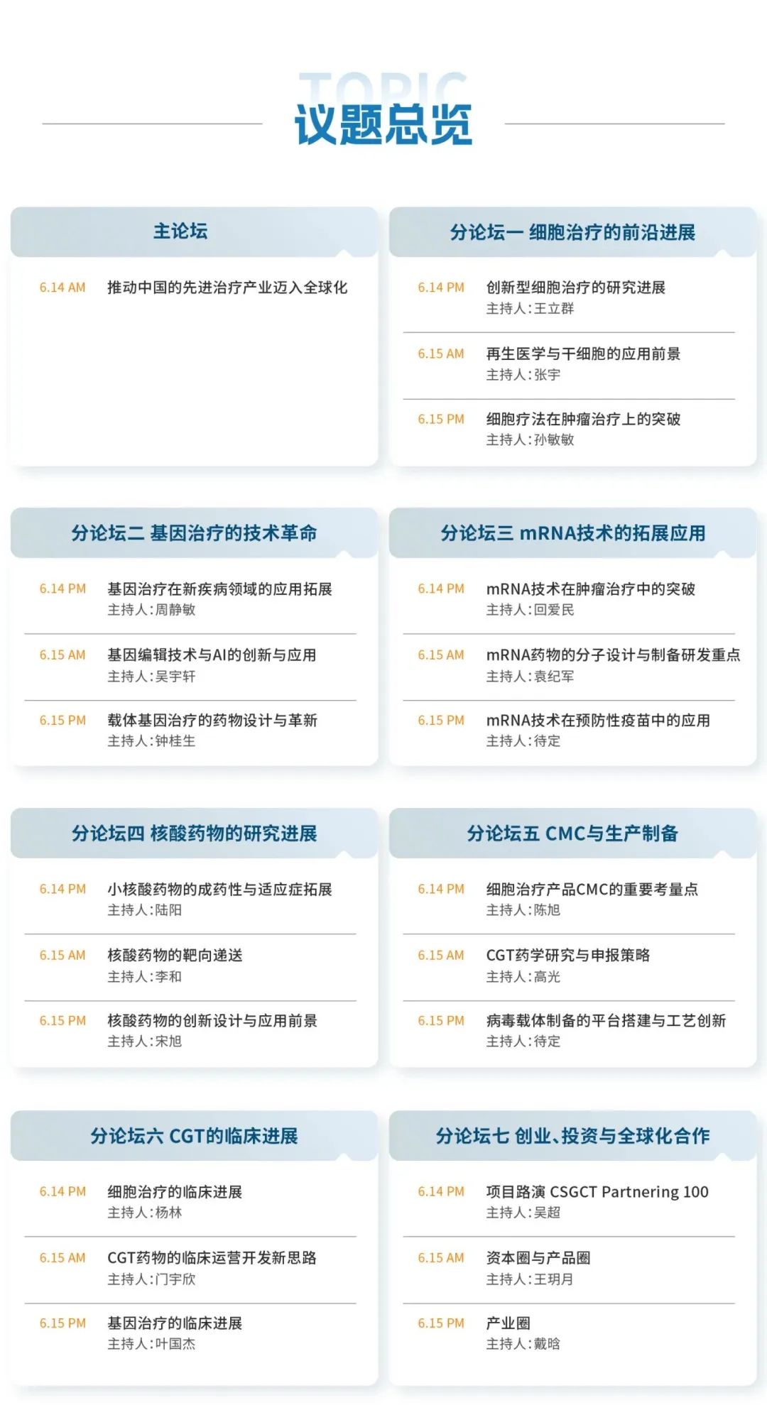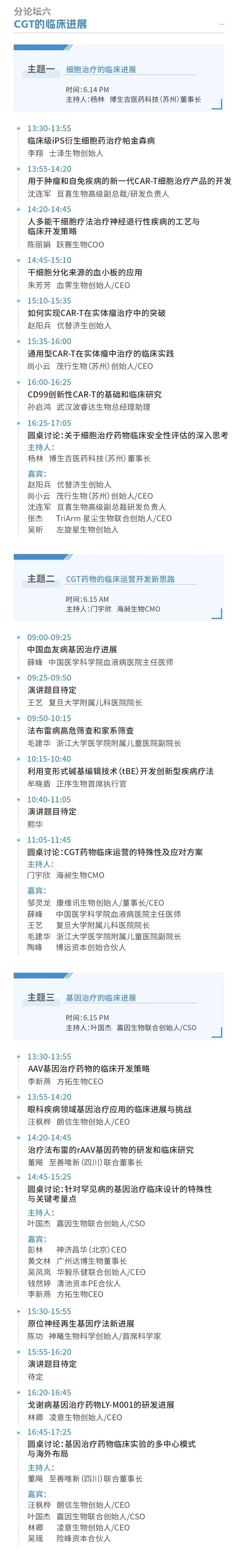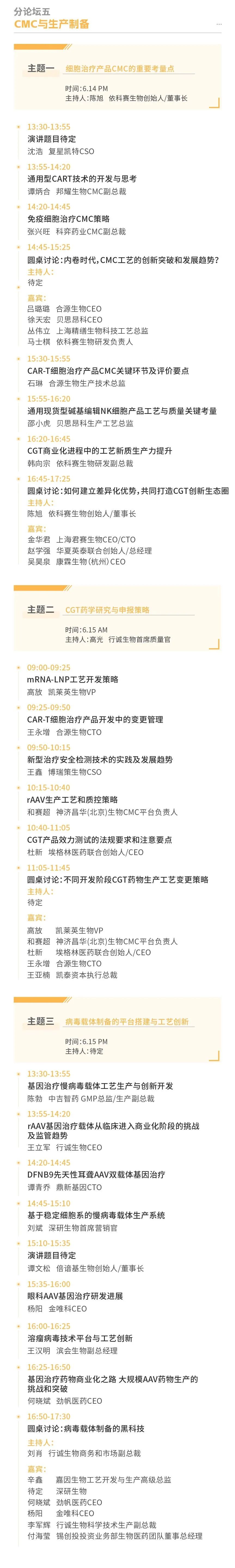 作为基因递送领域的领军企业,云舟生物一直致力于向全球客户提供高效、优质的基因递送解决方案,也期待通过深入的沟通与协作,与各方实现资源共享与优势互补,进而推动整个行业的共同进步。云舟生物执行总裁黄锐先生将参加分本次大会分论坛七的圆桌讨论及沙龙活动,与业内专家共同探讨CGT产业的发展和未来趋势,并期待能与更多行业从业者开展更深层次的交流与合作,共促行业发展。
