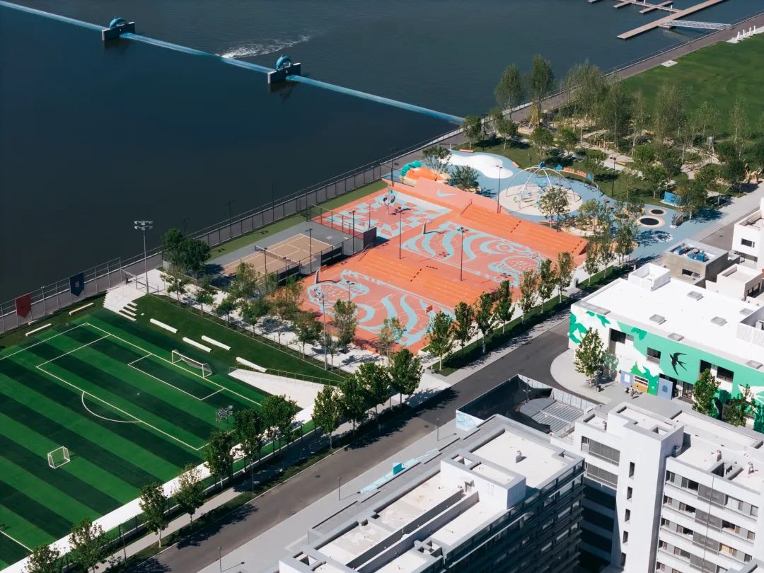 60000㎡的滨河户外空间,为孩子们提供开阔的运动与探索场地。足球场、棒球场、橄榄球场,不远处波光粼粼、浪花翻涌,绿茵场上,孩子们尽情挥洒汗水与活力,享受胜利与欢呼。
