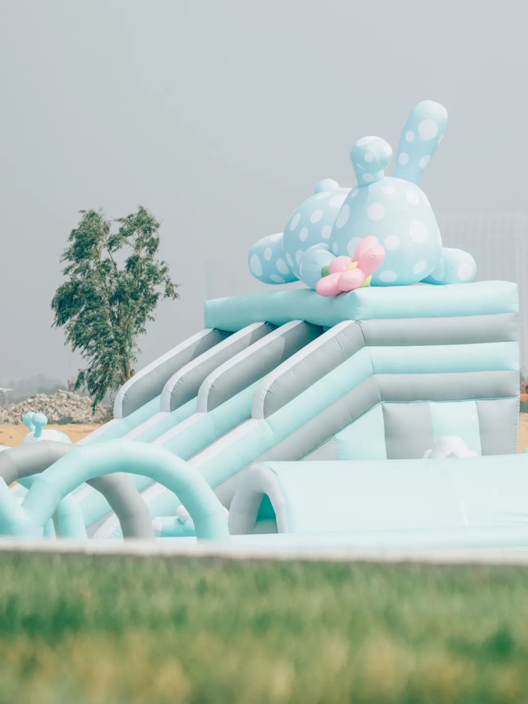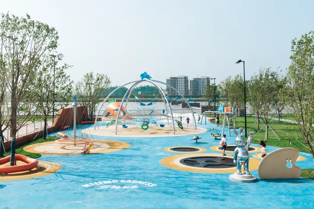 艺术家张权于阿那亚打造首座线下实体Melting Sadness 游乐场 I& II。MTSS PARK I 以MTSS蓝兔子KARORO打翻的颜料盘为灵感,并结合胡萝卜为原型进行趣味设计的公园滑梯、座椅等公共娱乐装置和丰富的地面颜色设计。每一处细节都传达着MTSS的主题内容与艺术家张权独特的想象力。“MTSS PARK II”则以“KARORO’S FLOWER”为核心概念,以代表美好愿景的小花为主题结合丛林跑酷、森林之声、年轮聚会场等多个层次穿插林中,等待大小朋友们前来探索并获得快乐感受。