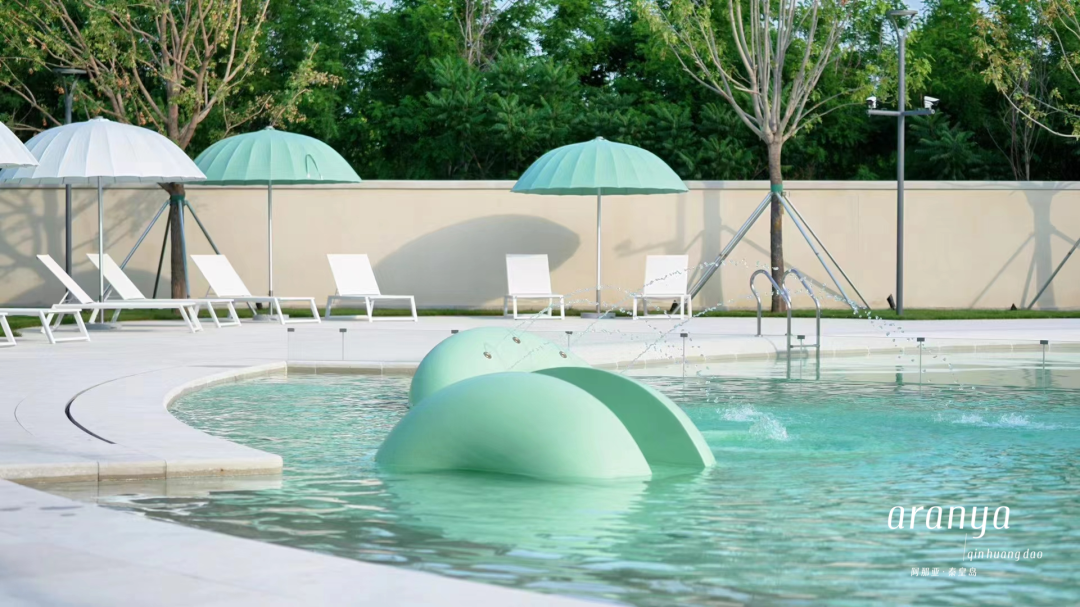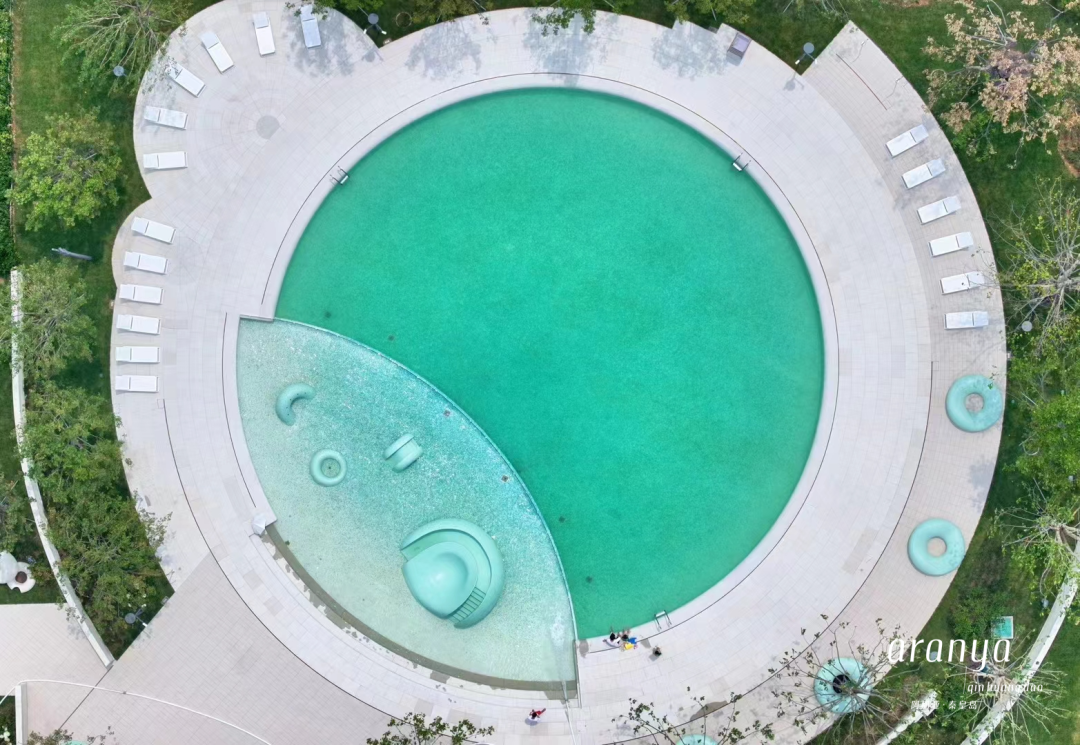 高颜值的甜甜圈泳池,青少年区水深1.2米,儿童区水深0.35米,泳池旁配有洗手间、储物柜、淋浴设施。