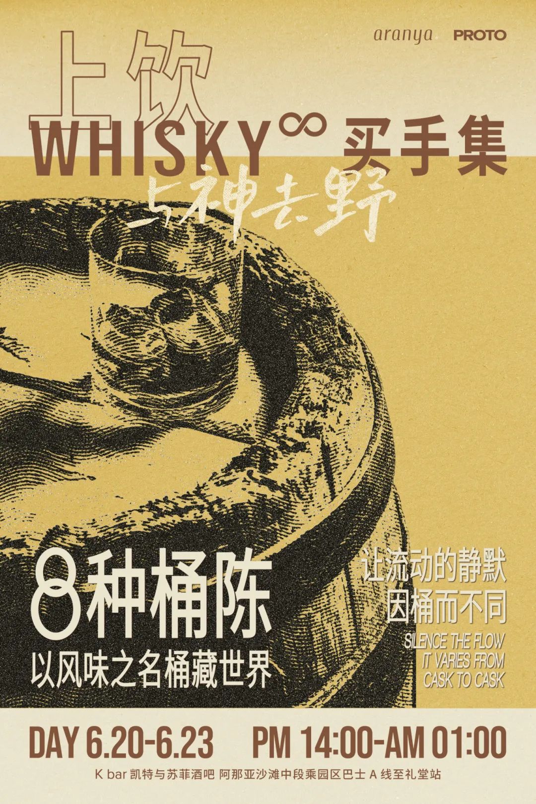 6月20日-23日,威士忌生活方式买手品牌PROTO来到阿那亚,限时呈现「上饮」Whisky∞买手集,以“与神去野”的自由态度,藉由买手市集与沉浸式品鉴活动,带来全球威士忌文化的在地体验之旅。