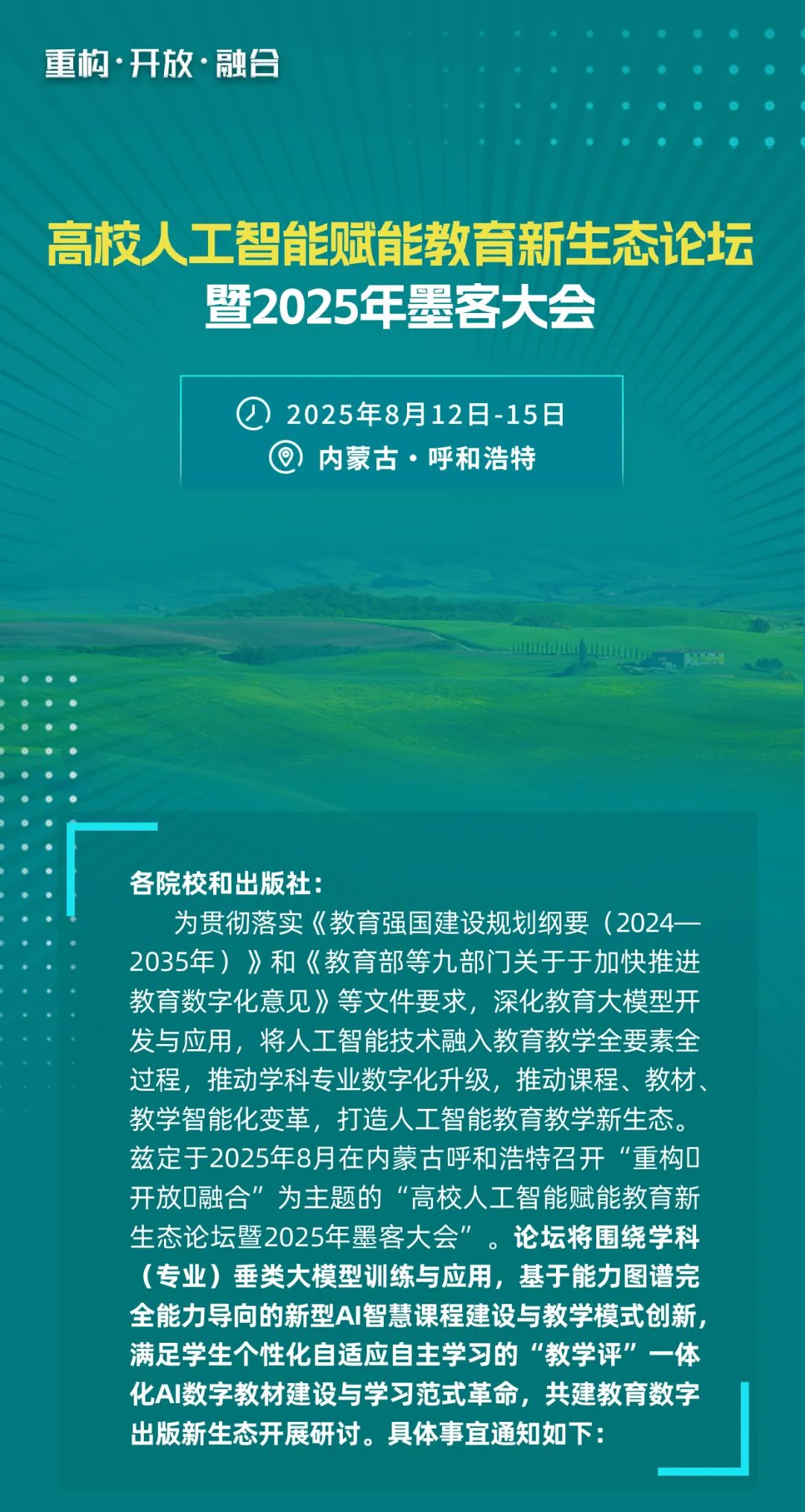 通知 | 关于召开高校人工智能赋能教育新生态论坛暨2025年墨客大会的通知