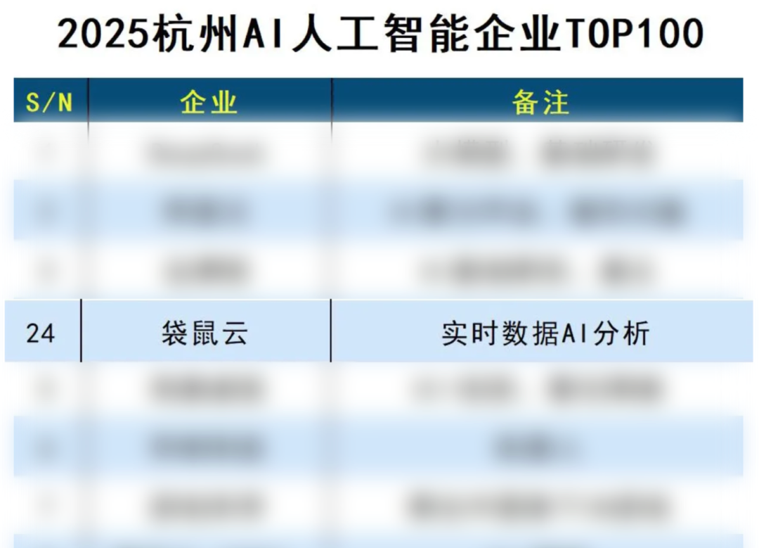袋鼠云入选2025AI人工智能企业TOP100、2024大数据服务TOP100