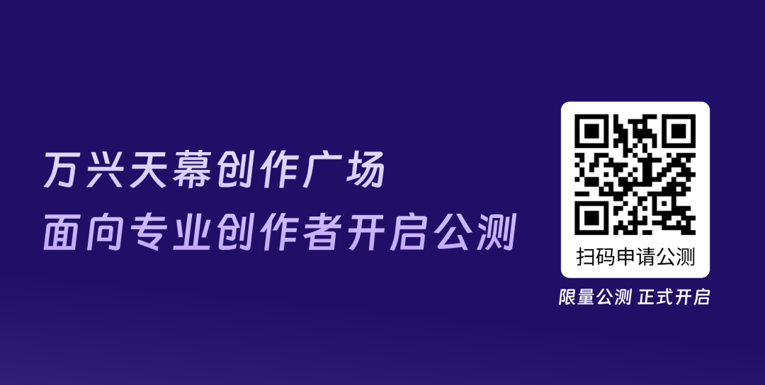 万兴天幕创作广场现已全面开启公测,诚邀您前往万兴天幕AI官网(tomoviee.cn)或万兴科技官网体验!扫描下方二维码,即刻申请公测名额↓