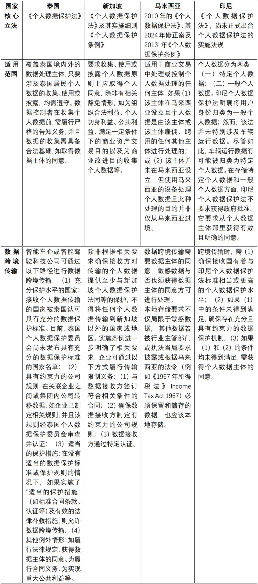 东南亚各国已逐渐建立了数据合规法律制度,但在数据合规方面又各有特点。就泰国、新加坡、马来西亚和印尼而言,个人数据保护法的主要框架如下: