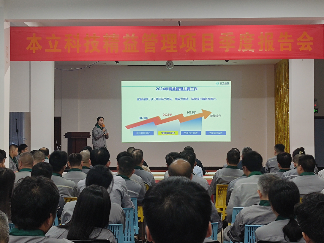 2024年6月5日,本立科技成功举办了精益管理季度报告会。本次会议深入回顾了今年前五个月的精益管理实践,不仅总结了阶段性成果,更着重于分享了在实施过程中积累的宝贵经验。通过交流学习,旨在推动全体员工共同进步,持续增强精益改善的能力,为公司的持续发展注入新动力。