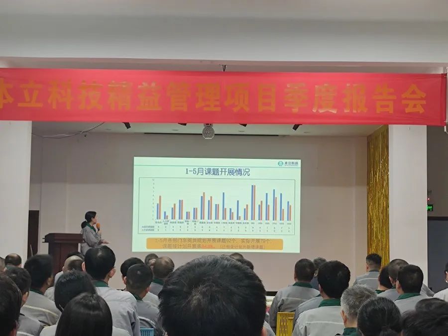 各部门以公司年度规划为指引,以绩效提升为动力,积极且持续地推进精益管理课题的研究与实施。会议伊始,首先对1-5月精益课题的开展情况进行了回顾与总结。