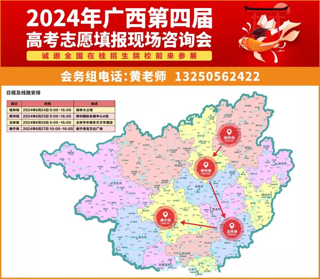 2024年是广西新高考改革招生第一年,共计有38.9万考生参加新高考,为了让更多广西考生更有计划、有目标的应对新高考,了解目标院校专业组情况,提升考生与院校的双向志愿满足率,特举办2024广西第四届高考志愿填报现场咨询会(以下简称“咨询会”),本届咨询会拟定于2024年6月24-27日在桂林、柳州、玉林、南宁四市举办。