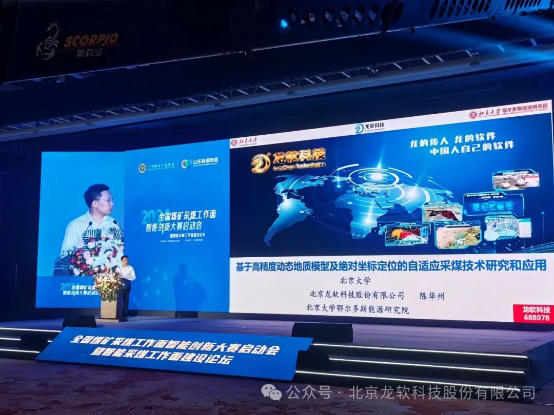 龙软科技受邀参加会议并作《基于高精度动态地质模型及绝对坐标定位的自适应采煤技术研究与应用》的主题报告,向与会代表介绍了公司在采煤工作面智能化建设方面的最新创新成果和应用案例。龙软科技经过多年自适应采煤技术研究,已经形成“透明化地测模型+自动调平陀螺全站仪精确定位+数字孪生管控+正射校正视频流”四大关键技术的基于精确时空信息的采掘工作面少人或无人自适应截割模式,这些技术与2024年4月28日七部门联合印发的《关于深入推进矿山智能化建设促进矿山安全发展的指导意见》中提倡的重点攻克透明地质、井下精准定位导航、矿岩识别、采掘设备姿态精准控制等“卡脖子”技术高度契合。