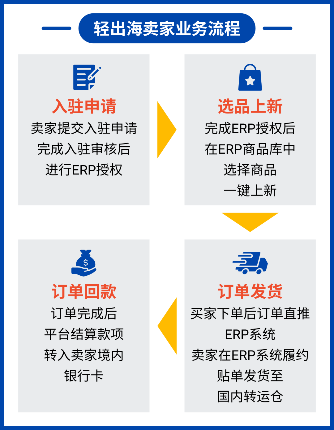 从商品上新到库存同步,从运营协助到官方扶持,轻出海计划致力于为卖家打造一条 “低门槛、低成本、高效率” 的跨境经营之路。
