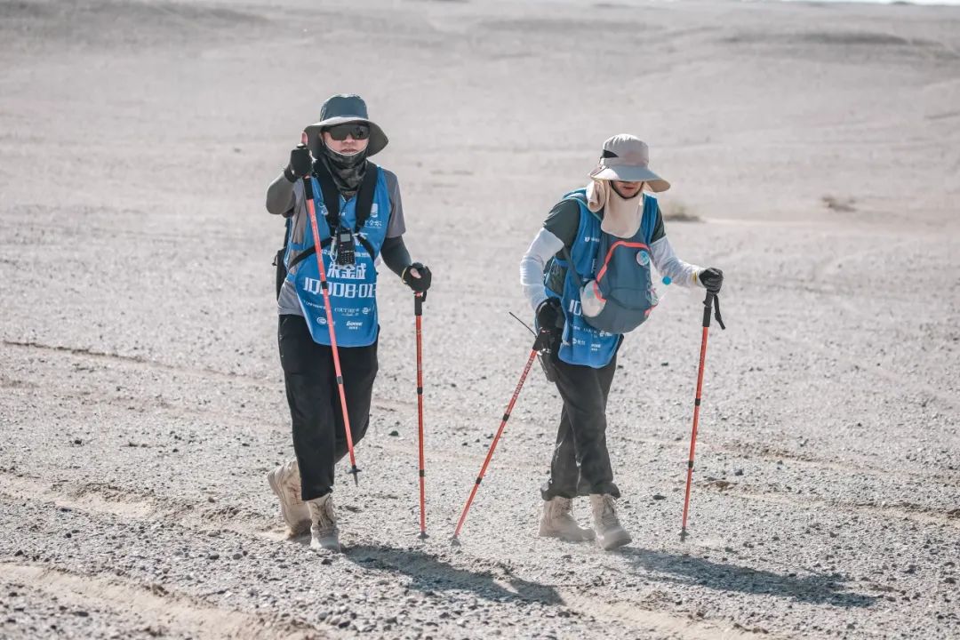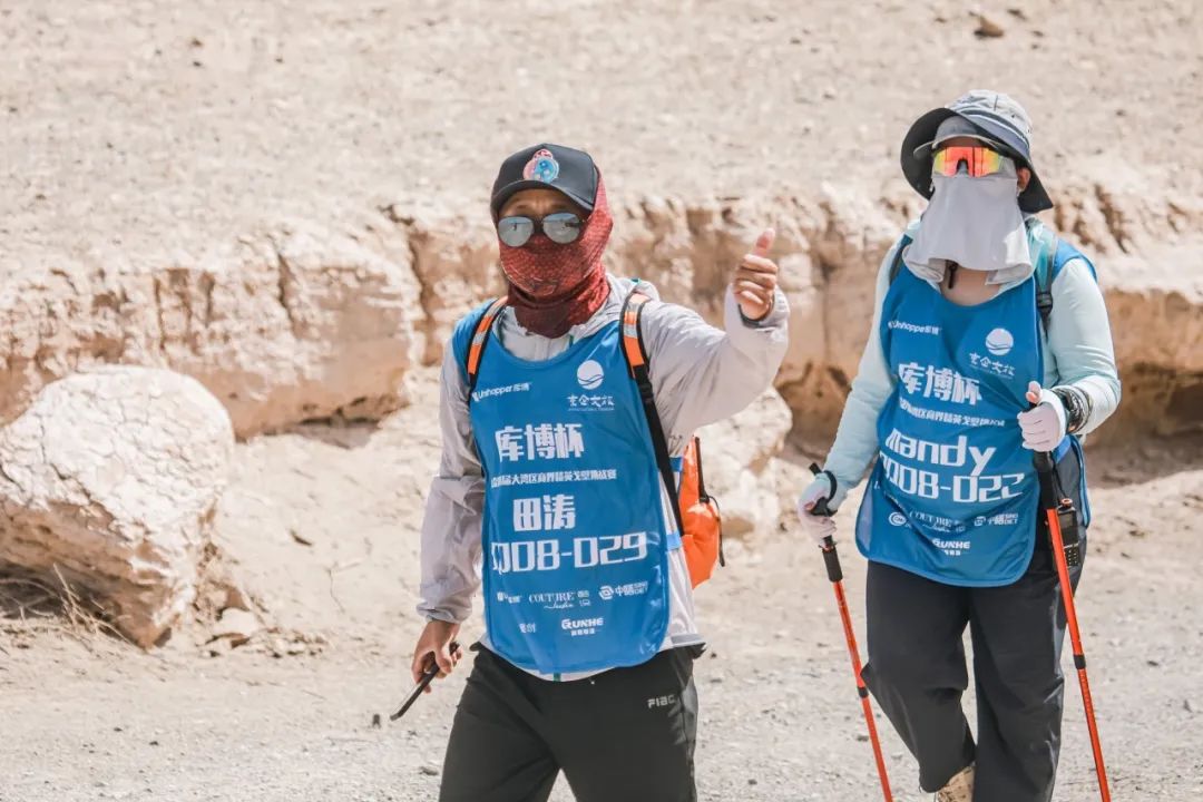 108公里,四天三夜,这些数字的背后,是在戈壁中点点星火般的库博徒步行者,经受着自然力量的严酷考验。高温与暴晒,以及昼夜温差巨大;在复杂地形中长时间行走时,会面临被砾石刺穿鞋底、被骆驼刺划伤腿部的行进障碍。此外,连续高强度的跋涉,足底起泡、足部损伤、关节与肌肉劳损等折磨持续冲击痛觉神经。而更为艰难的,莫过于行进中身体极限与心理意志之间的博弈,但库博勇士未曾却步。