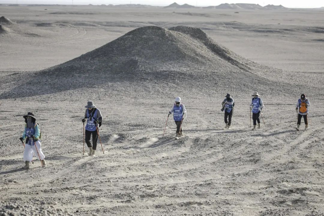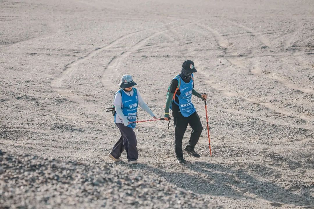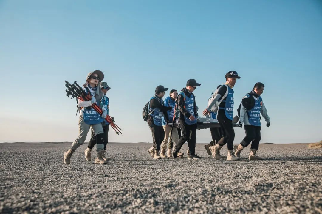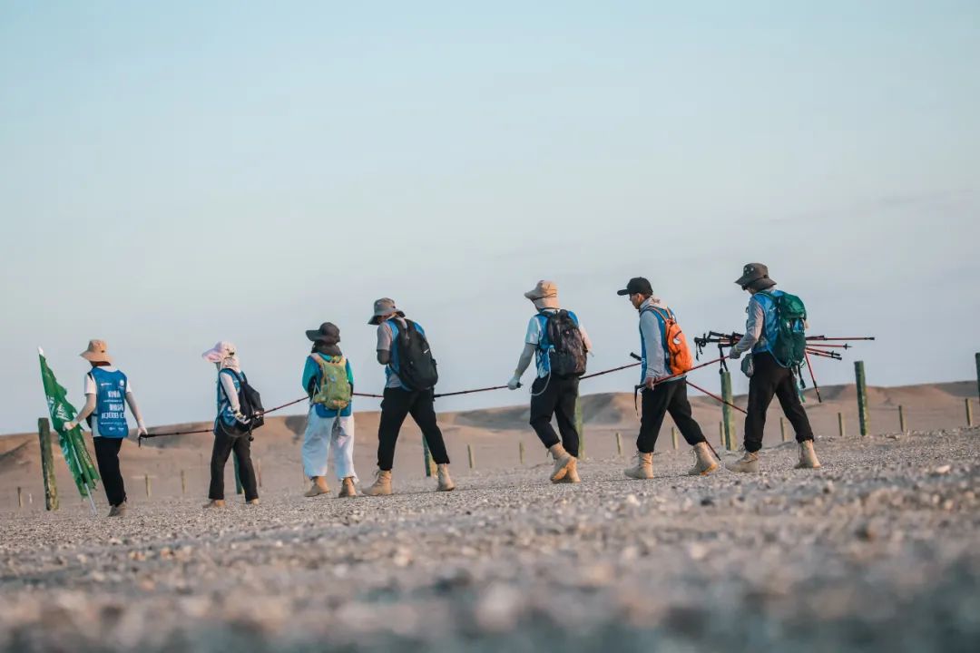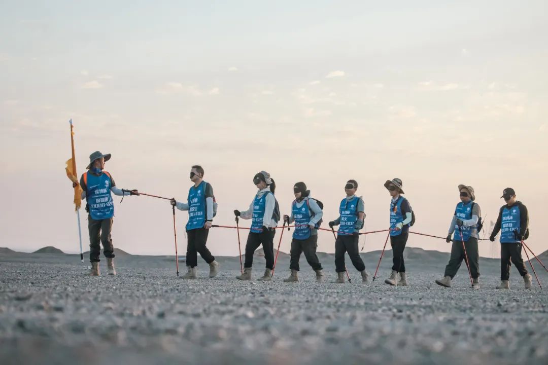 在身体与意志的博弈下,每一步的踏沙而行与坚持都是对自我的超越。征途漫漫,每前进一百米,都是对“永不放弃、永不言败”勇士精神的诠释,彰显着库博人的闯劲与韧劲。这场征途不仅丈量了戈壁的广袤,更丈量了库博人意志强度与韧性高度。库博团队成员在重重考验中,展现出卓越的耐力与非凡的承压能力。历经磨砺,方显非凡本色。